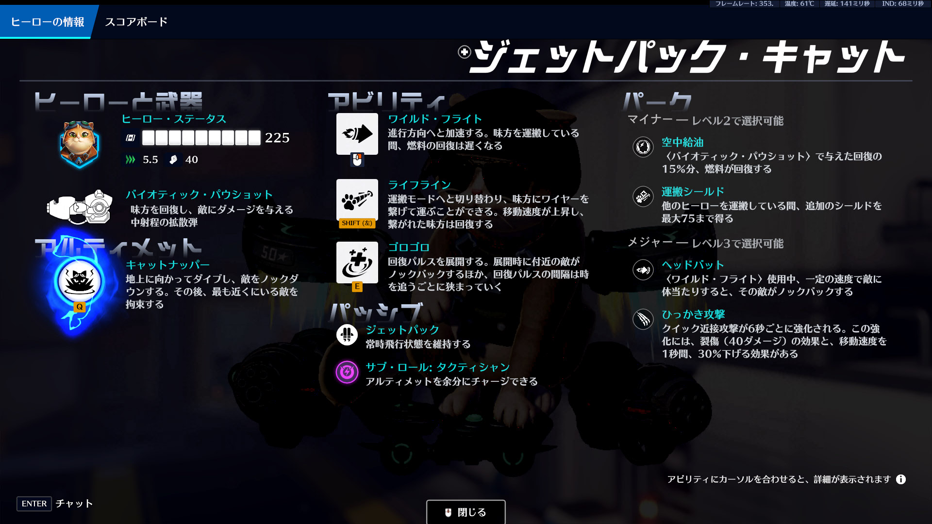 また、新たなマイナーパークとして「空中給油」を追加しました。これにより、回復重視のプレイスタイルでも燃料を補給しやすくなります。