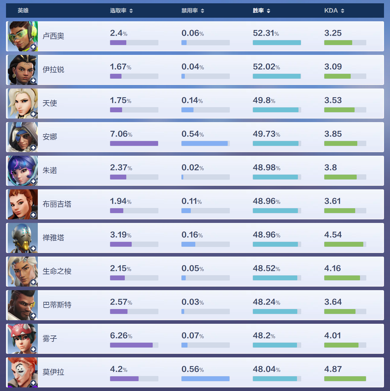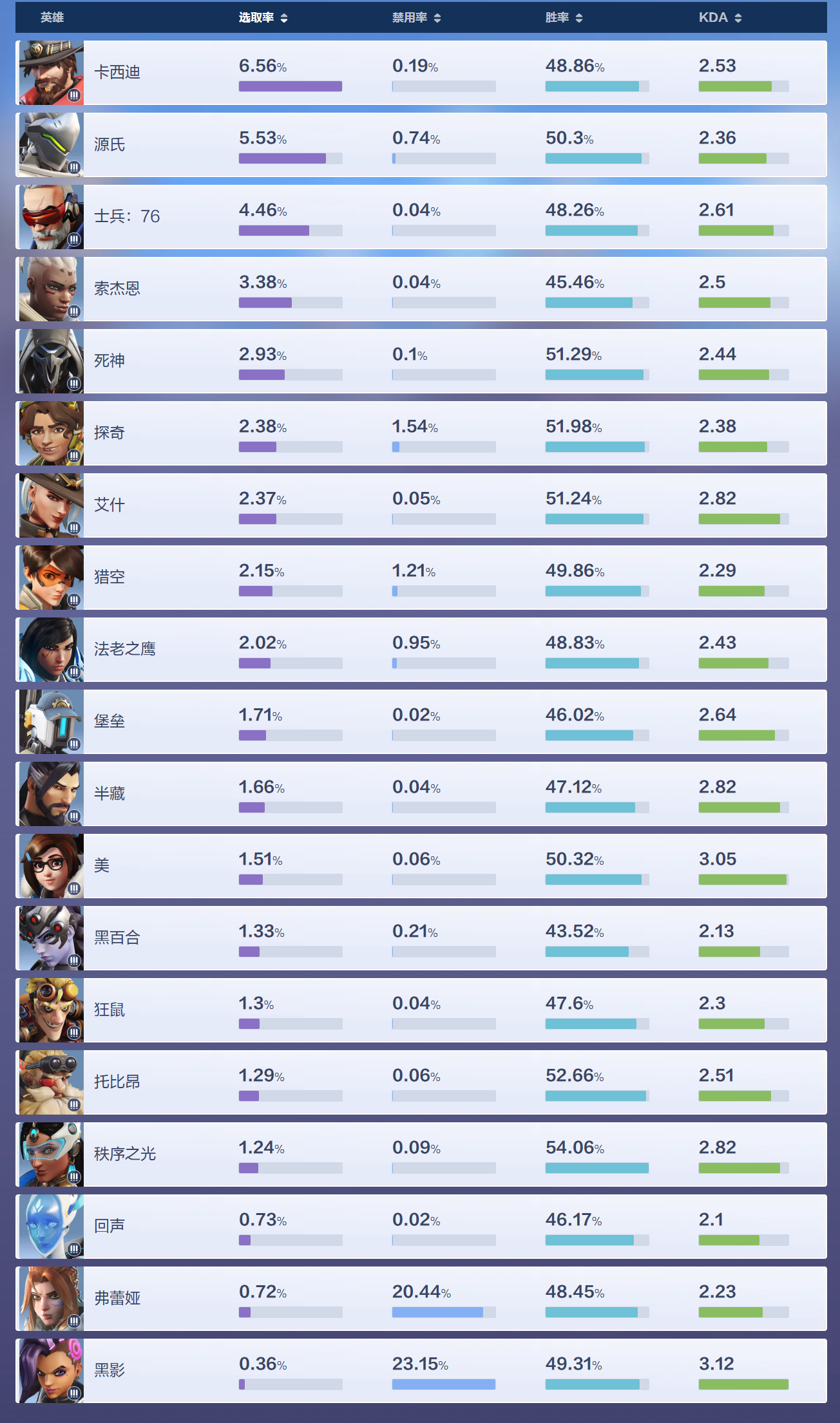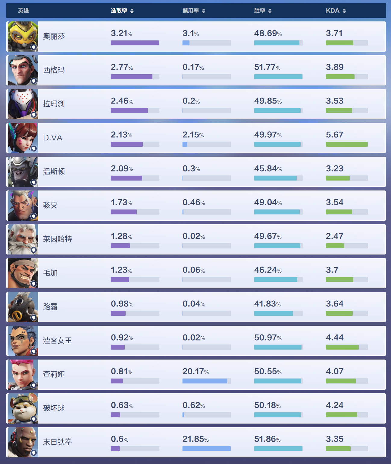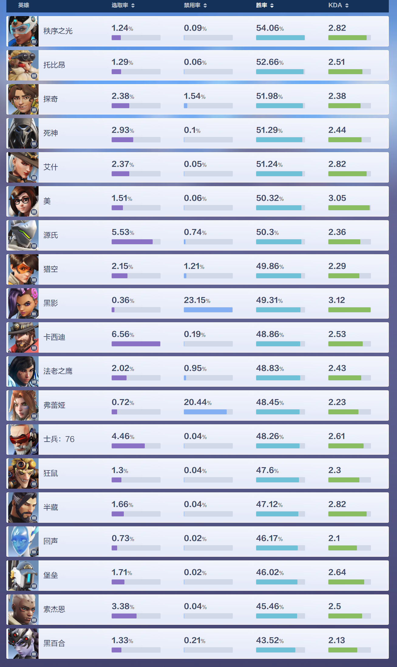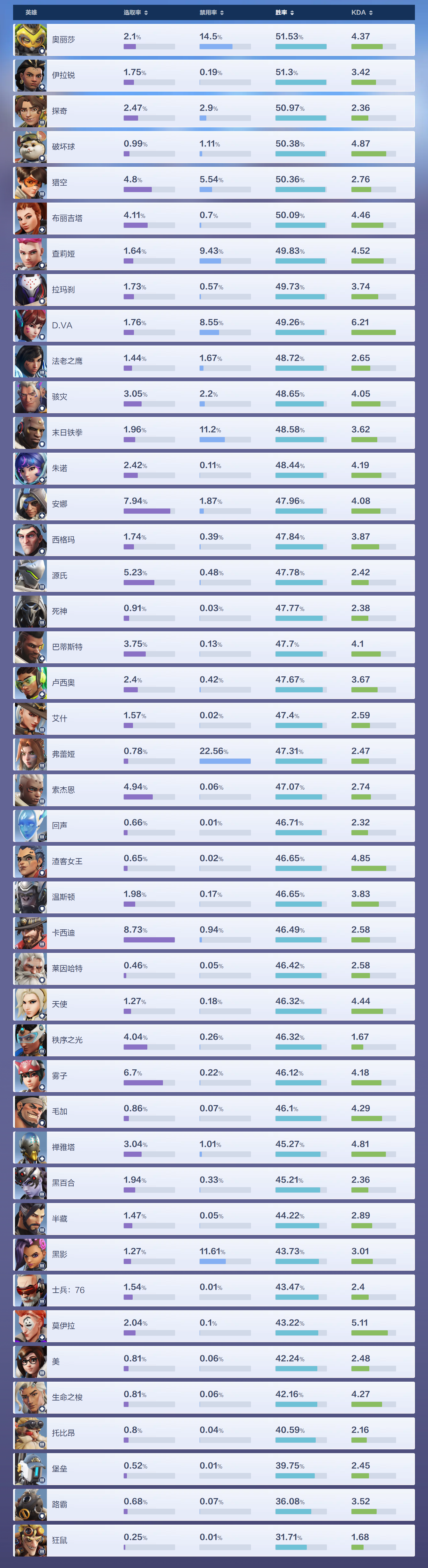 blizzard中国公式によると現在の『ヒーローの使用率及び勝率』は現在の下記の様になっているとの事です。