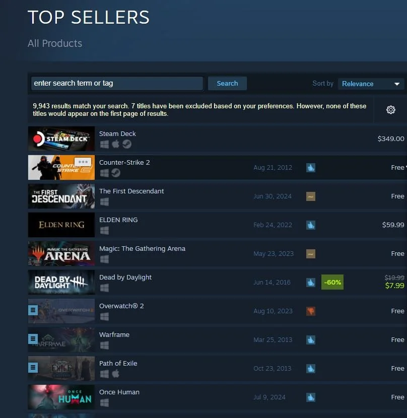 キリコとマーシースキン(およびコラボスキン)はOW2がSteamの売上チャートのトップ10にランクインした唯一の例です。
