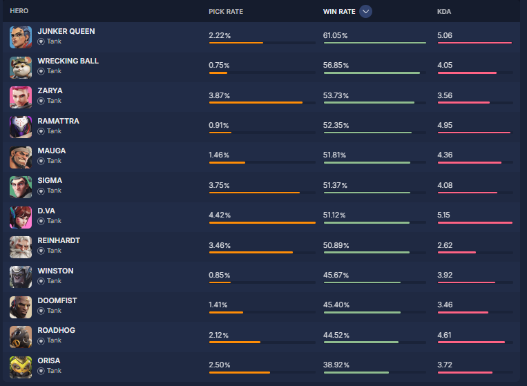 安心しろハザードが飛び抜けて1位だから、タンクの他の勝率がめっちゃ低いのが物語ってる