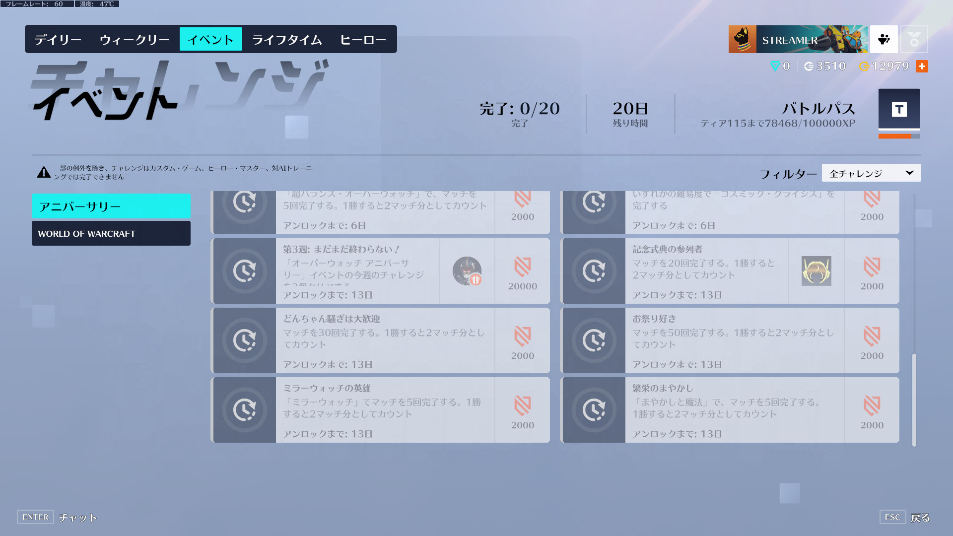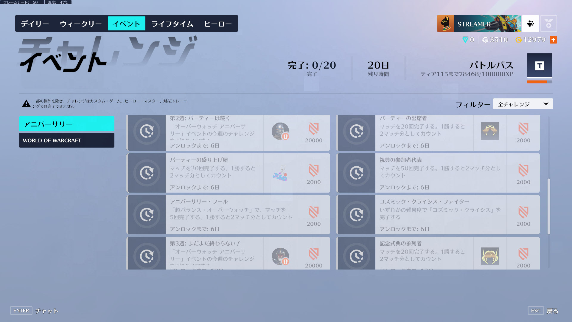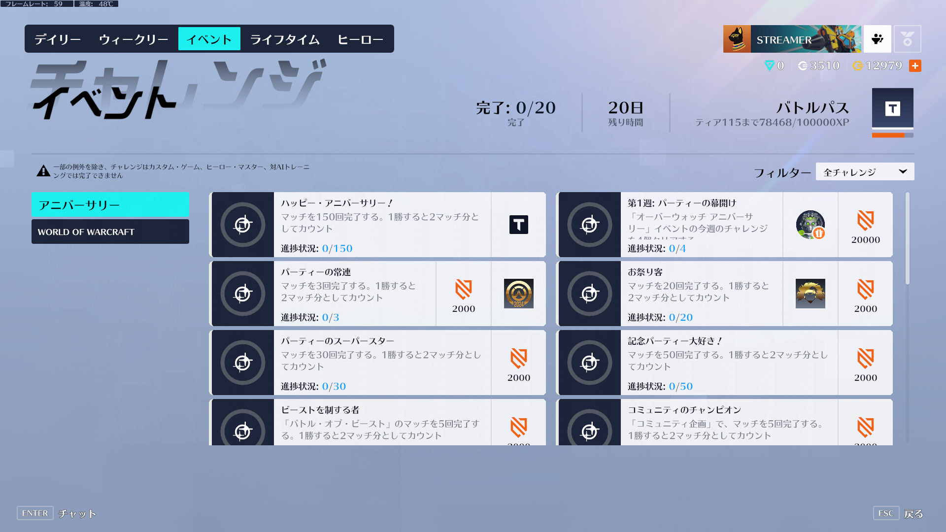 本日よりOW2の2周年を祝うアニバーサリーチャレンジが開始しています。