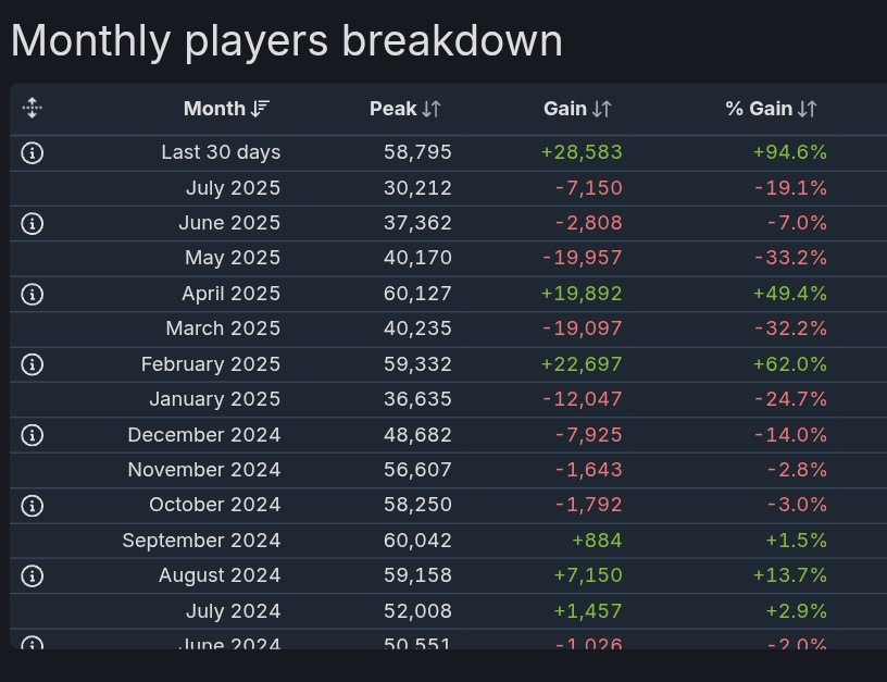 現在の平均は過去最高(昨年9月)より20%程度低いが、Steam上で今まで以上に多くの(中国以外の)プレイヤーがプレイしていると思われる。
