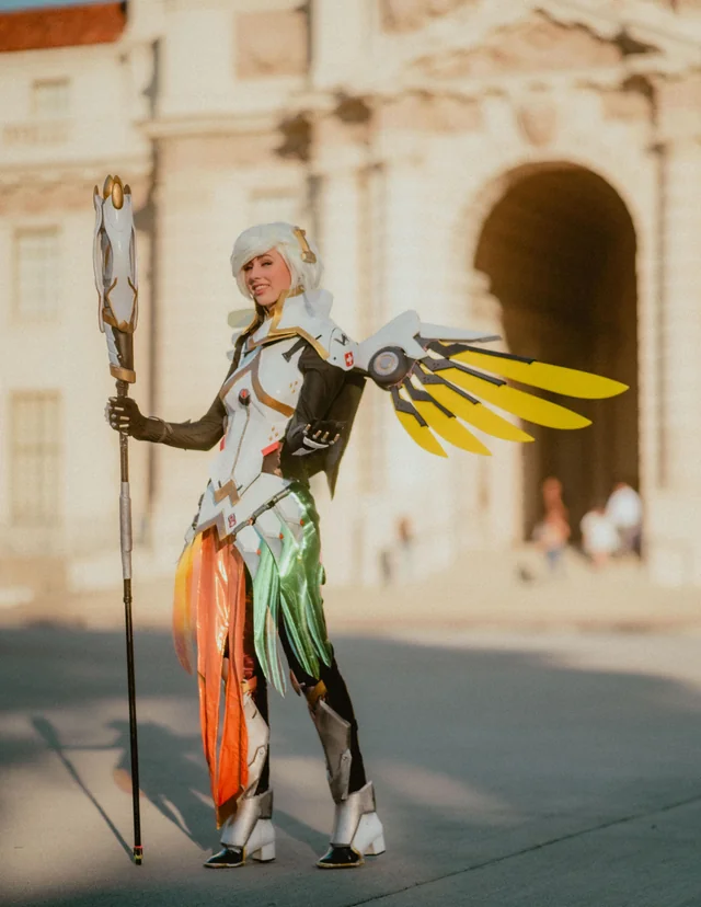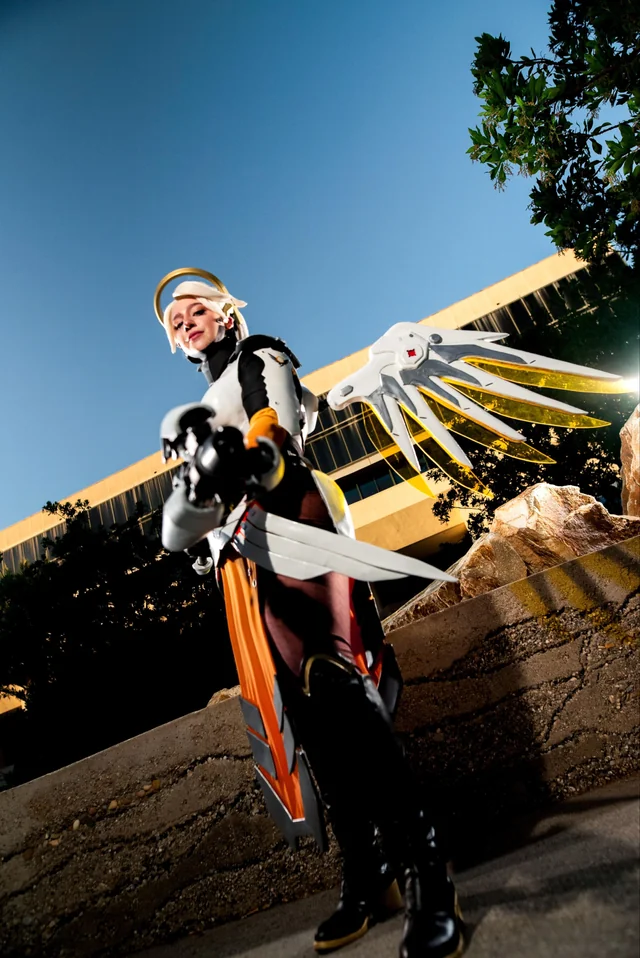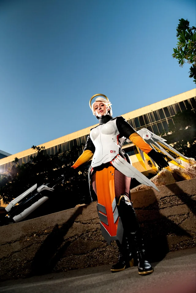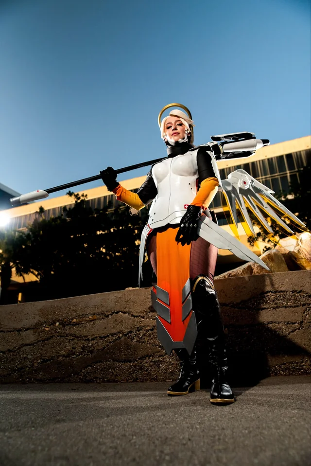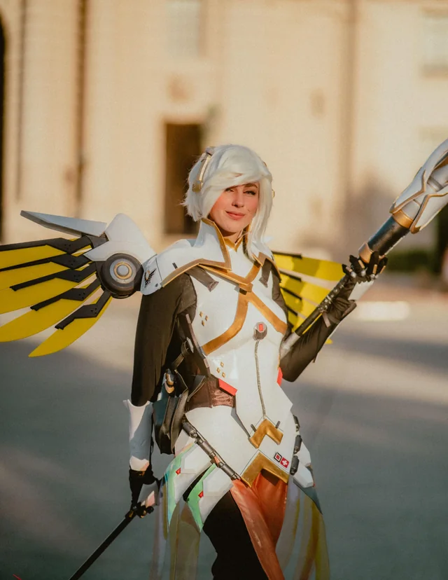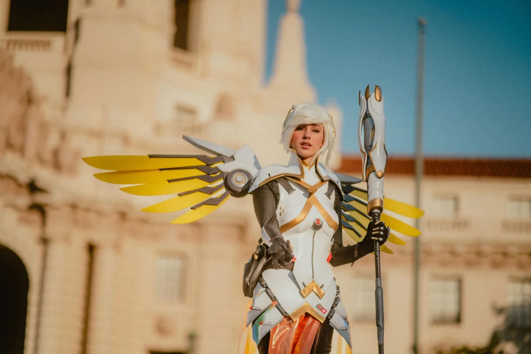 My lifeguard Mercy cosplay with some other amazing ow costumes at Blizzcon