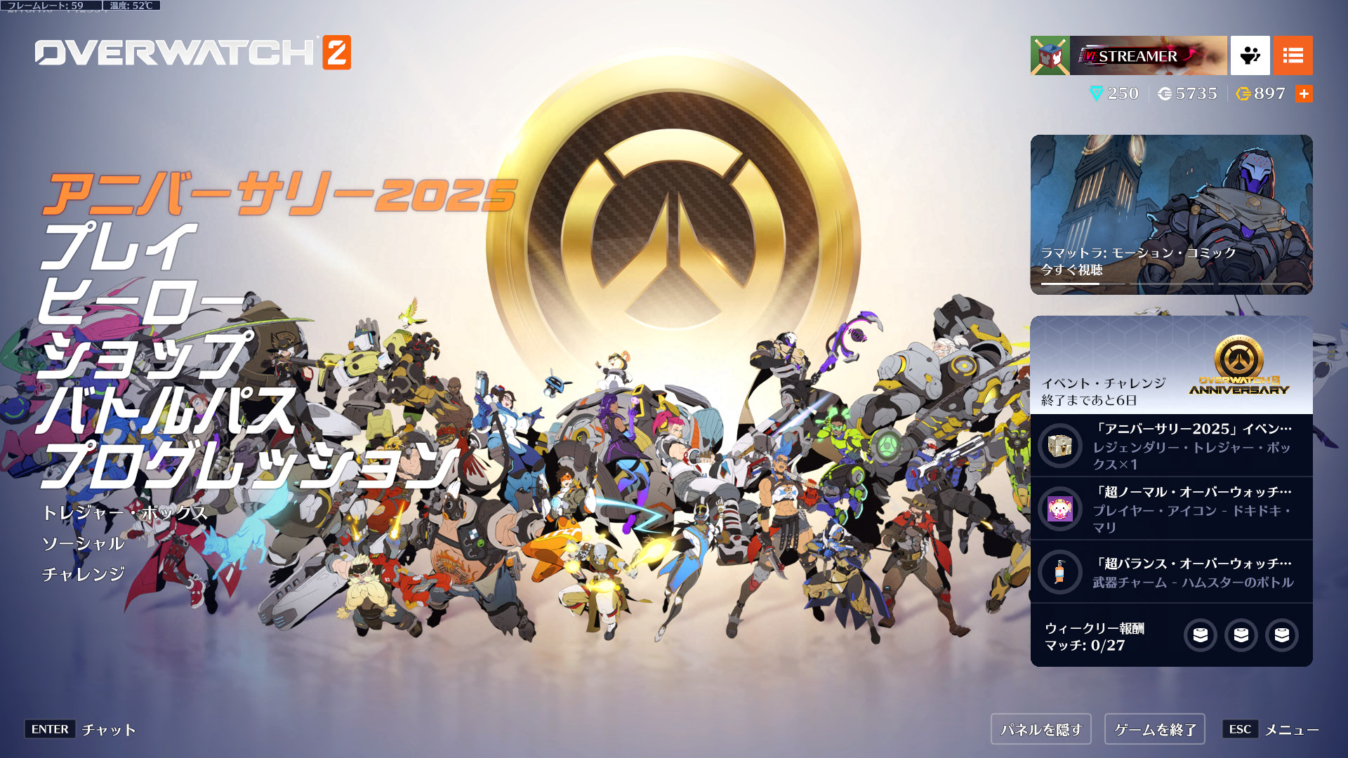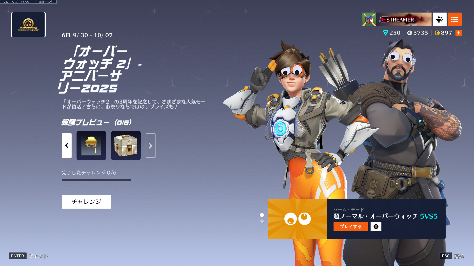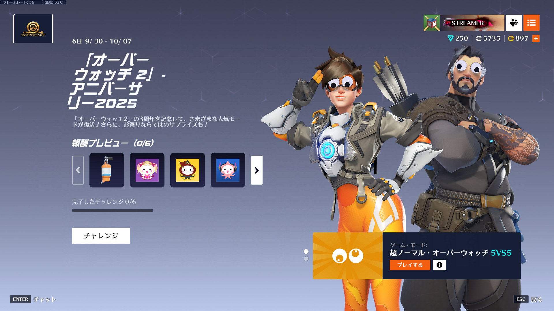 既に言われてるけど、チャレンジの超ノーマルオーバーウォッチとオーバーウォッチクラシックの項目逆だろ。誰が好んでただのクラシック20戦もやりたがるんだ。俺はCRマーシーがしたいんだ。