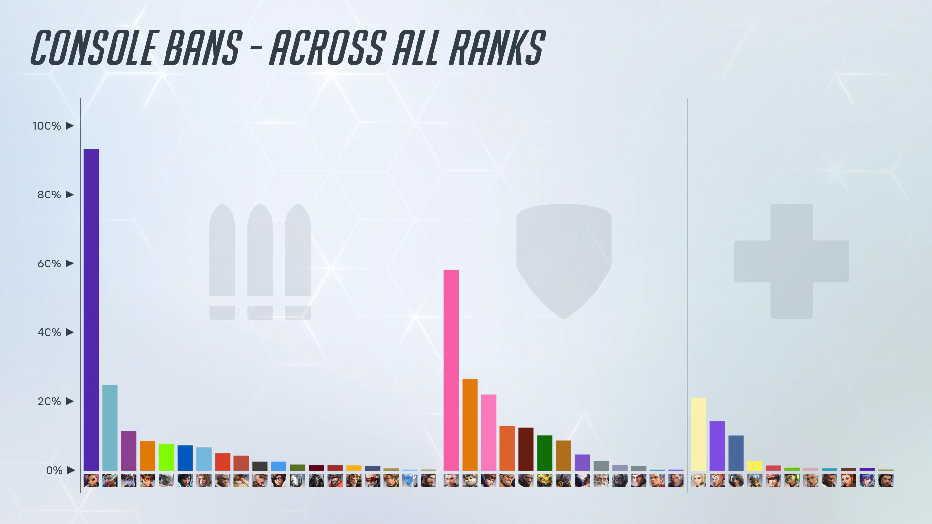 まずは、プラットフォームをPCとコンソールの大まかなくくりに分けたうえで、各ヒーローのBAN率を見ていきましょう。