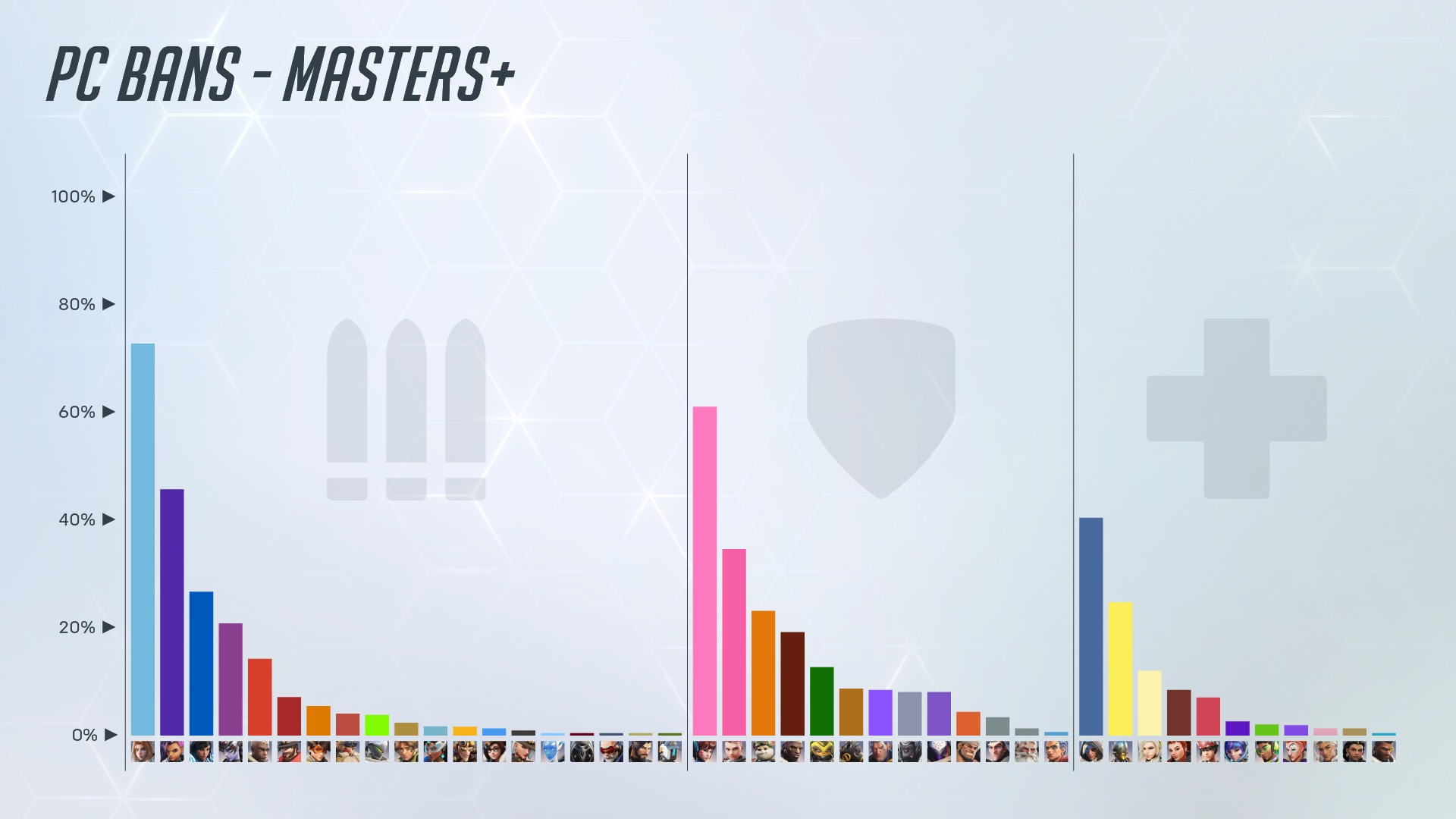 たとえば高ランク帯では、BANされるヒーローがチーム別にそれなりに固まっていて、グランドマスターになると、BANに投票されるヒーローが約4人にまで絞られます。