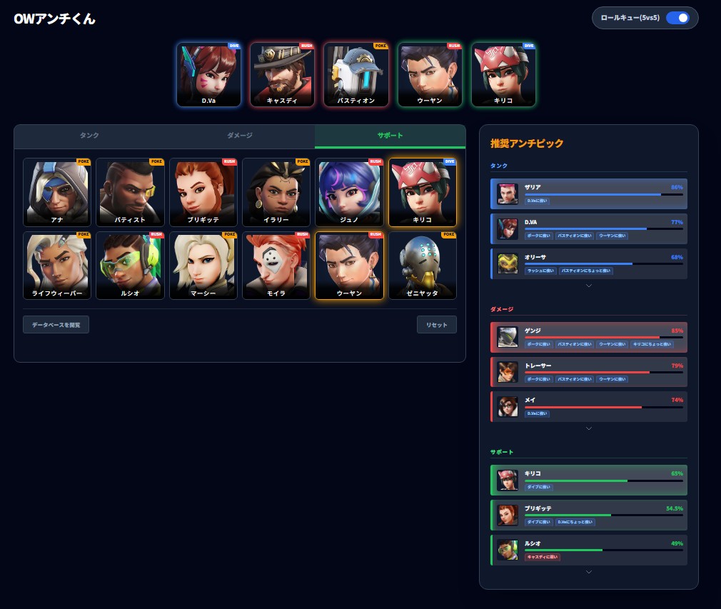 敵構成のアンチピック判定ツール「OWアンチくん」登場、負けたらツールのせいでOK