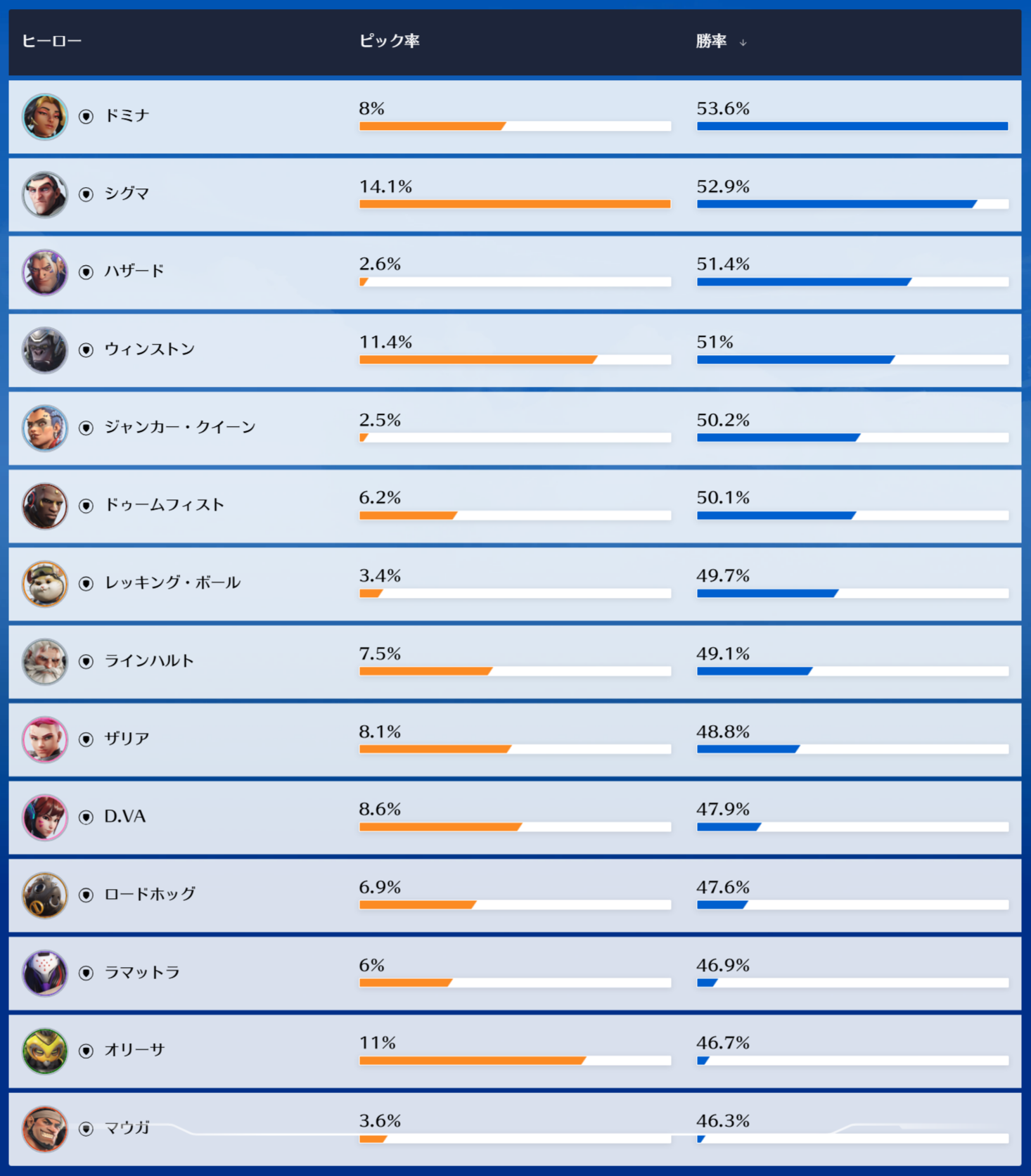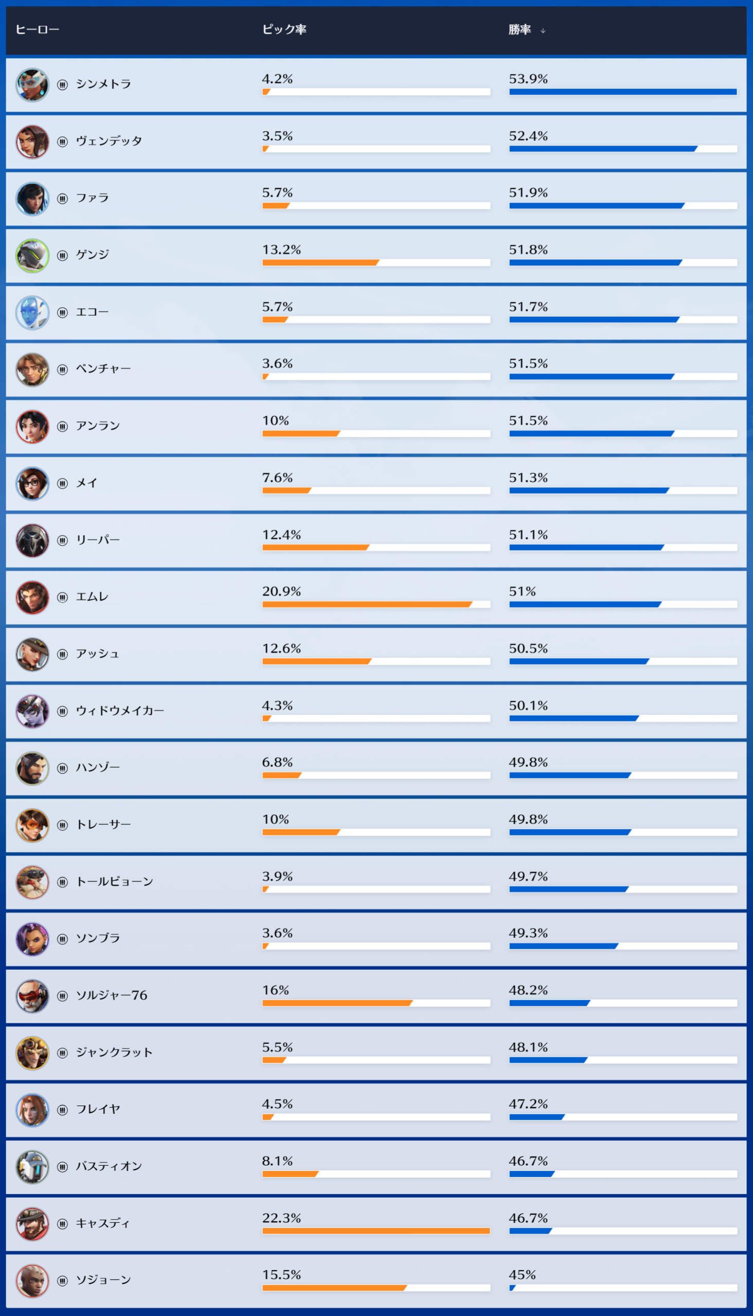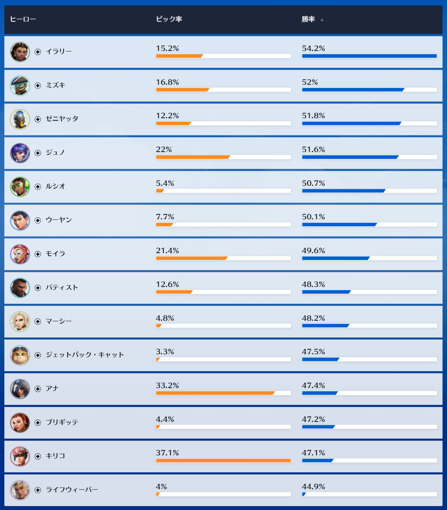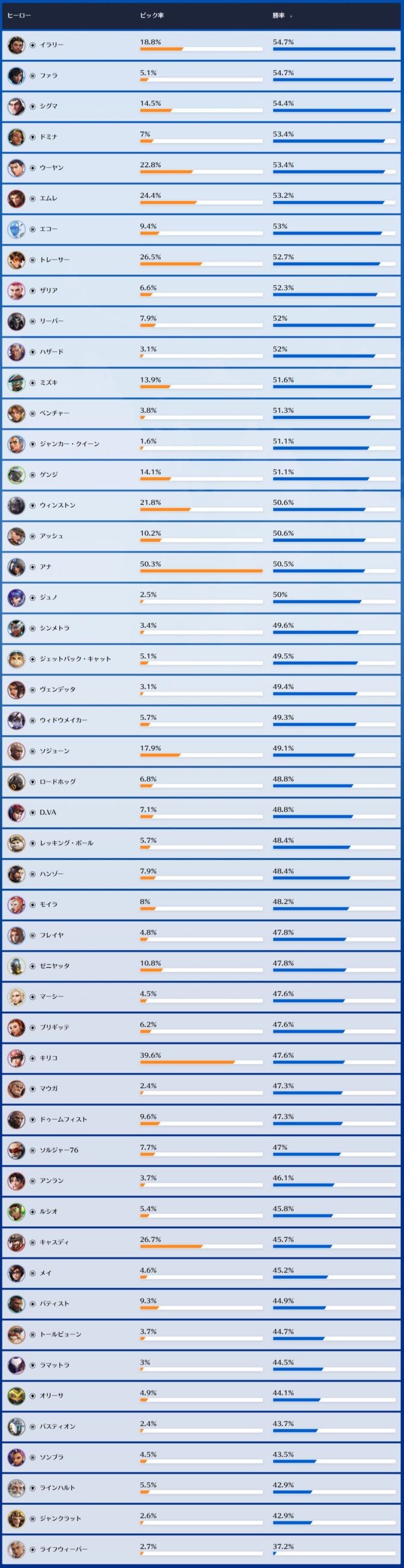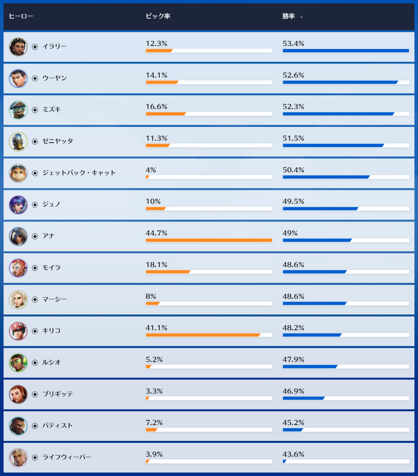 上位帯にピック率も勝率も50%超えてるぶっ壊れヒーローいます