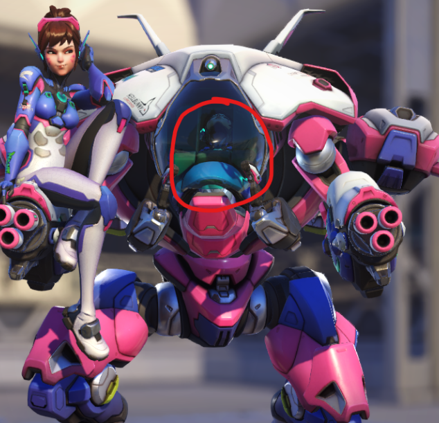 D.vaのオーバーウォッチ2スキンでは、メックの操縦席の中でD.vaが上を見つめているんです。