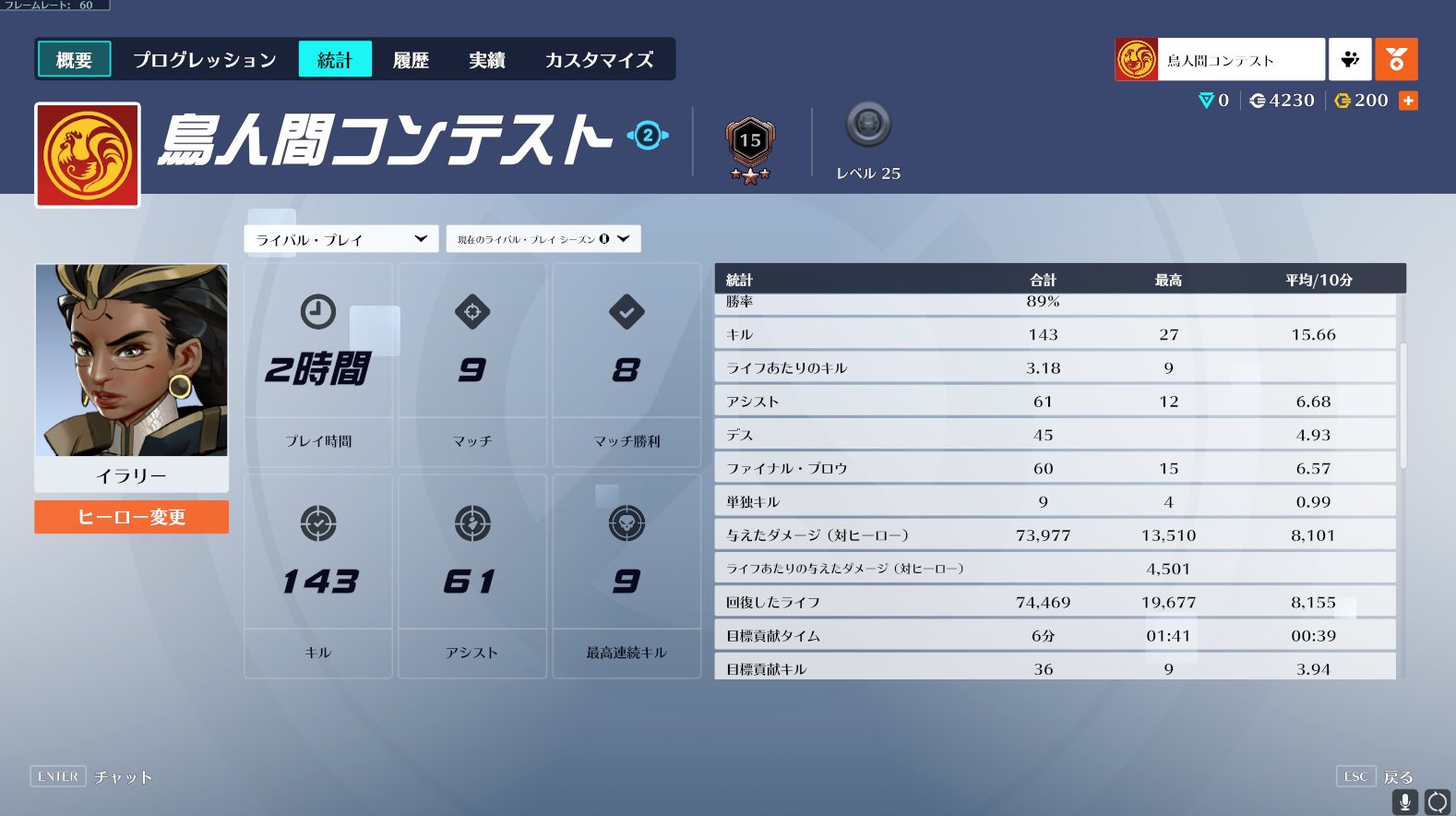 チャンピオン到達時のイラリーの戦績は、驚愕の勝率89%という数値に。