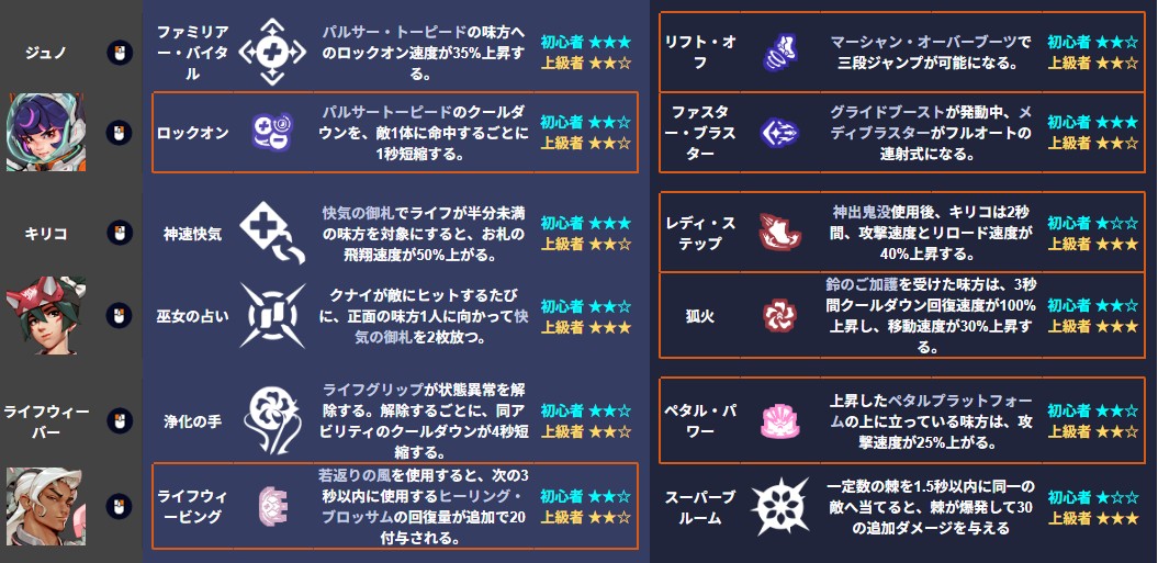 自分のスキルレベルに合わせて、最適なパークを選択する際の指針として活用してください。