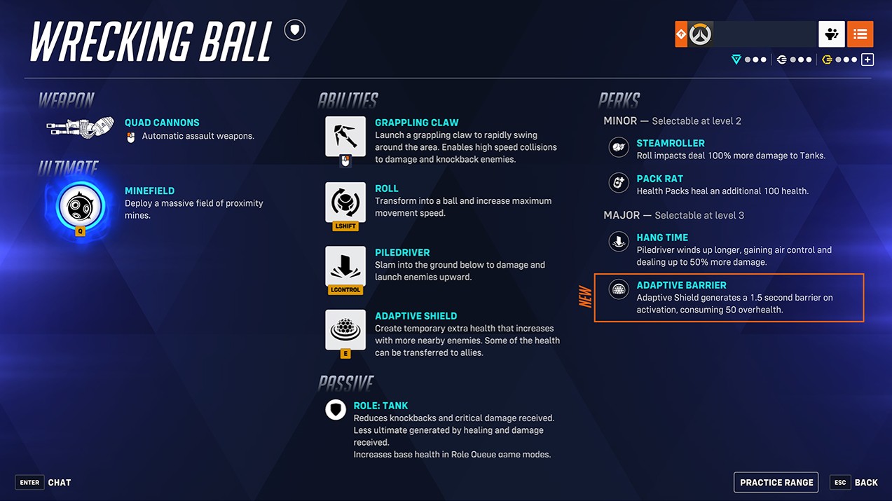 ・アダプティブ・シールドは、発動時に1.5秒間持続するバリアを生成し、50のオーバーヘルスを消費する。