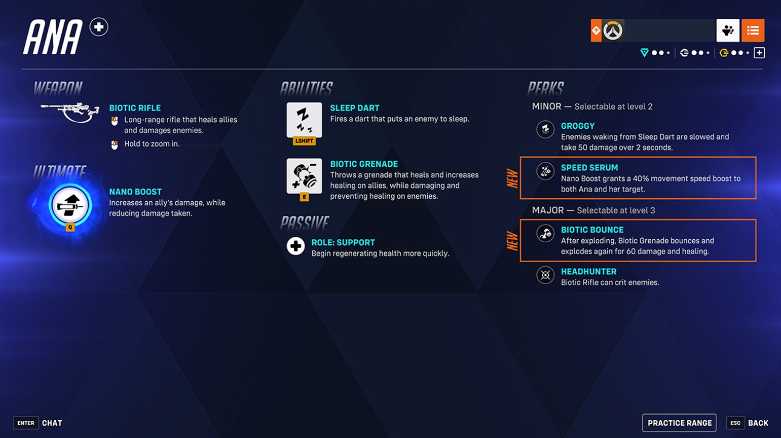 ・スティム・パックはバイオティック・フィールドと入れ替わる。使用すると、ソルジャー76は5秒間、毎秒30の体力を回復し、さらに攻撃速度が20%上昇する。