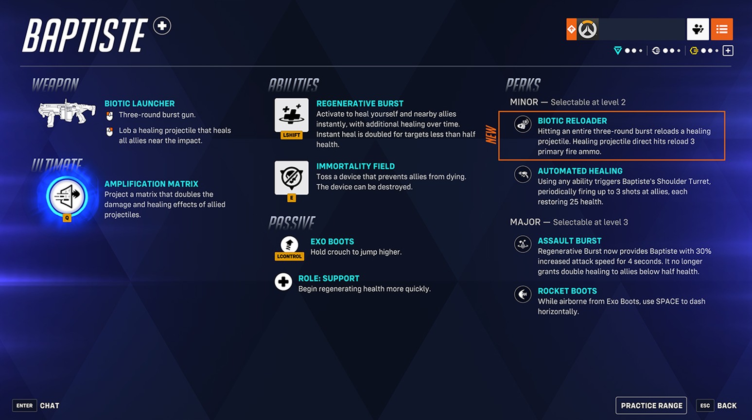 ・アビリティを使用すると、バティストのショルダータレットが起動し、味方に最大3発まで自動で射撃して、それぞれ25の体力を回復する。