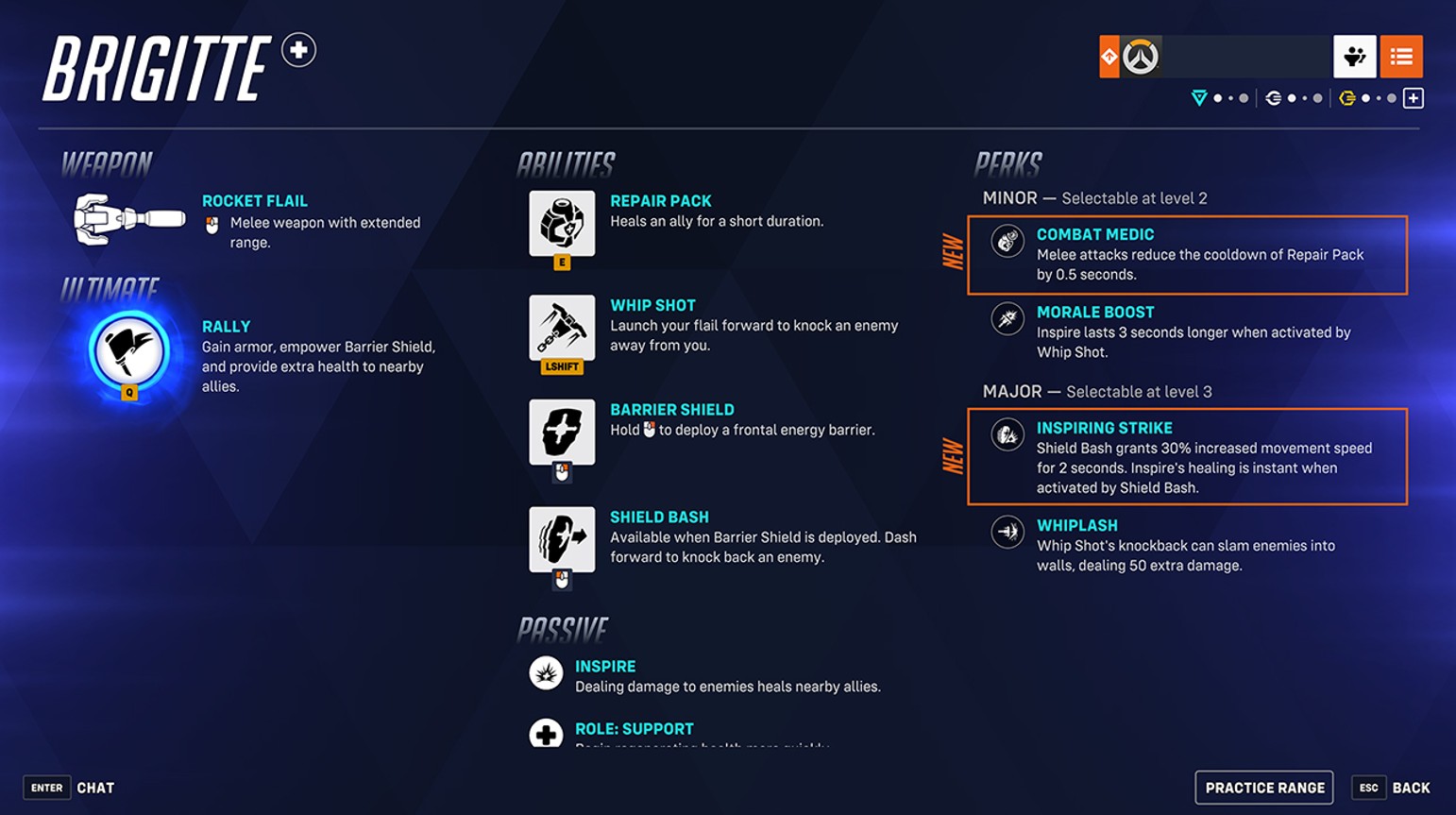 ・シールドバッシュ使用時、移動速度が2秒間30%上昇する。また、インスパイアの回復がシールドバッシュで即時発動する。