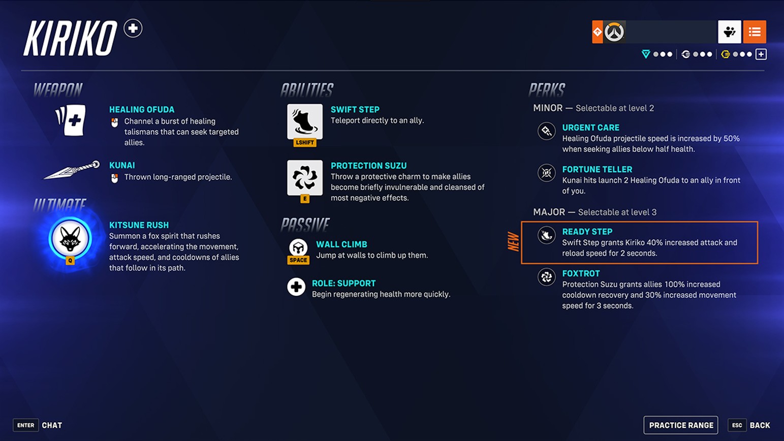 ・神出鬼没使用後、キリコは2秒間、攻撃速度とリロード速度が40%上昇する。