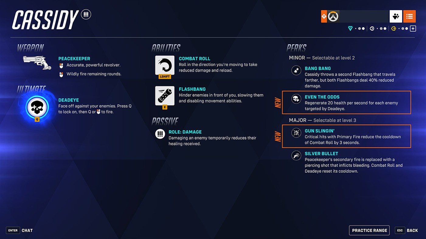・ピースキーパーのセカンダリ射撃が「貫通ショット」に置き換わり、命中した敵に出血効果を与える。さらに、コンバットロールとデッドアイを使用するとこのクールダウンがリセットされる。