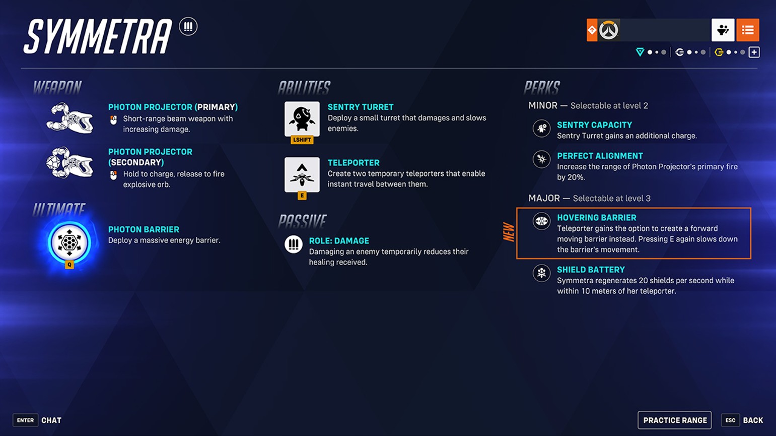 ・テレポーターが前方に移動するバリアを展開するオプションに変化。もう一度 E を押すとバリアの移動速度を減速させられる。