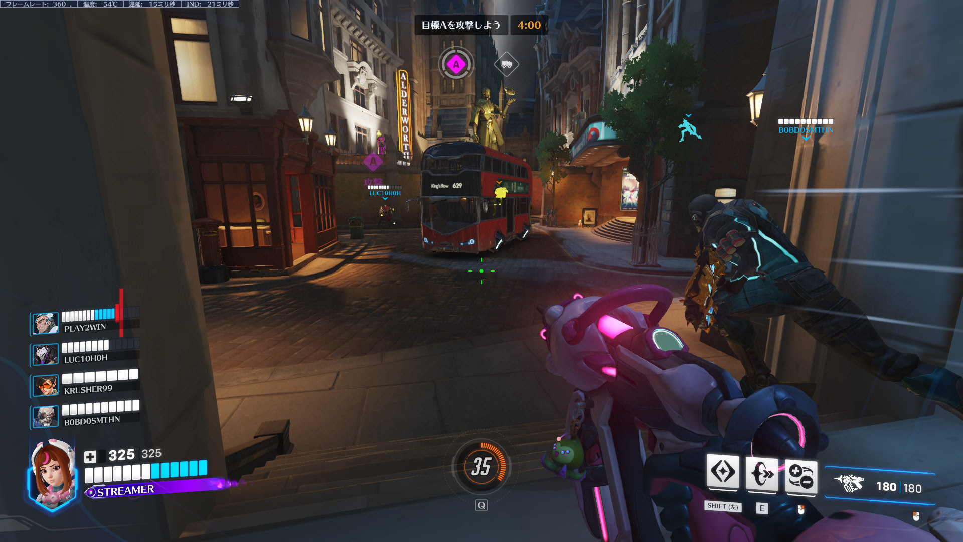 本モードでは全ロールの共通UIとして、左下にチームメンバー全員のヘルスバーが追加されています。