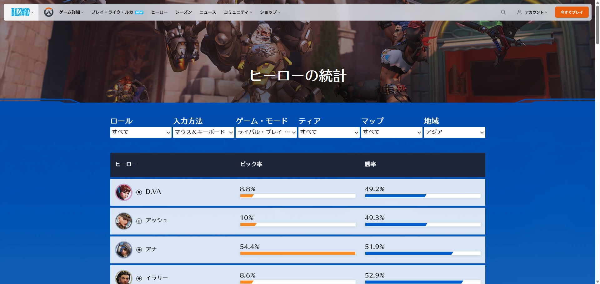 https://overwatch.blizzard.com/ja-jp/rates/?input=PC&map=all-maps®ion=Asia&role=All&rq=2&tier=All