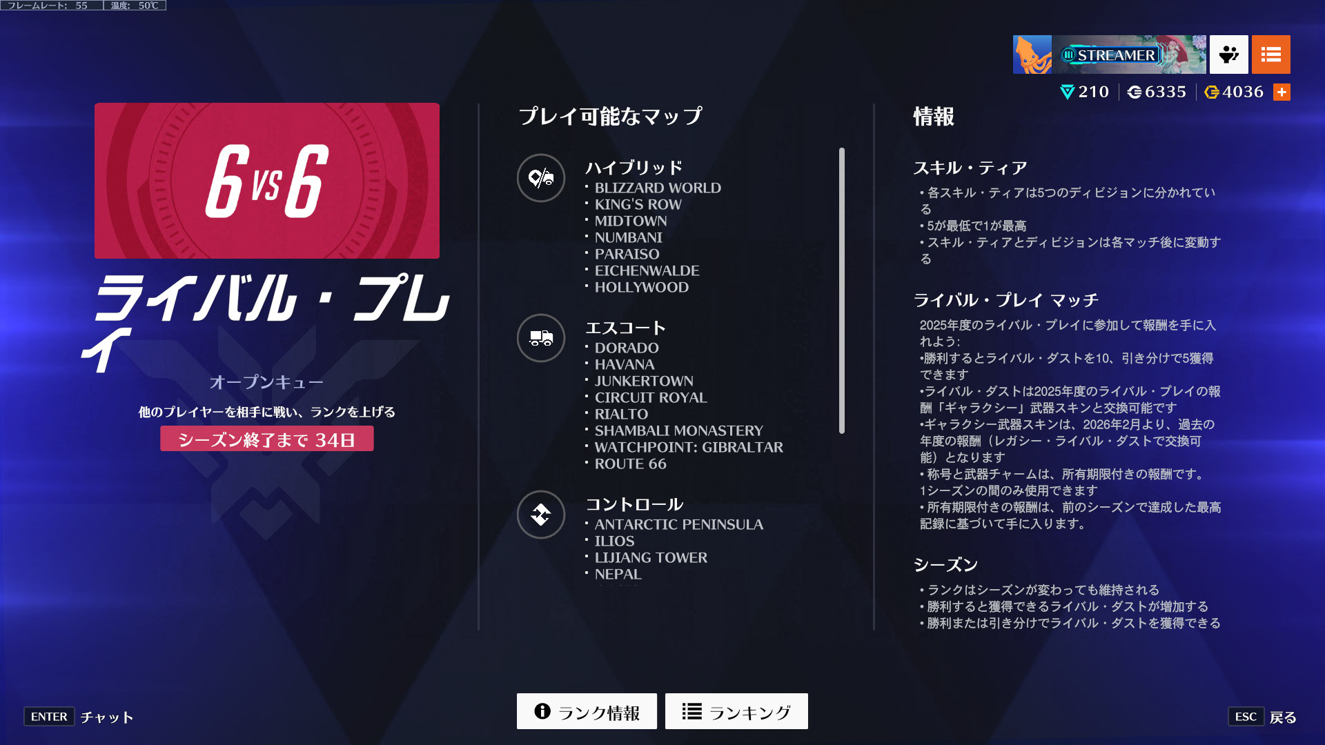 6v6ライバルいい感じだね、オープンキューのランクがそのまま引き継ぐからそれも良かったのかも