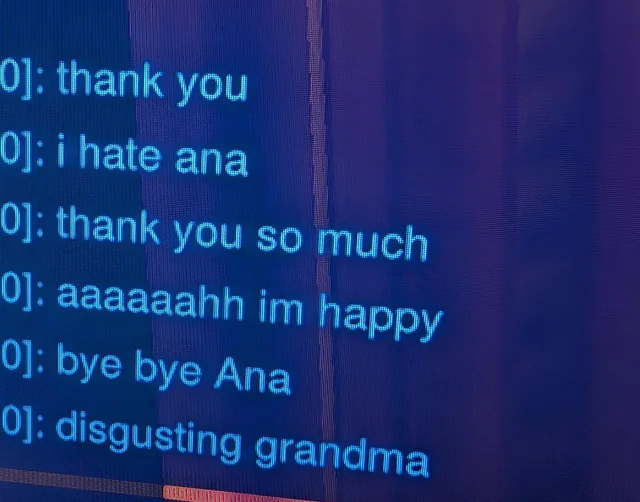 実際にアナがBANされると、リスポーンで味方一人ひとりの前に来てエモートで深々とお辞儀しながら「ありがとう。アナ大嫌いなんだ。うれしいよ。さようならアナ、気持ち悪いおばあちゃん」と連呼していた。