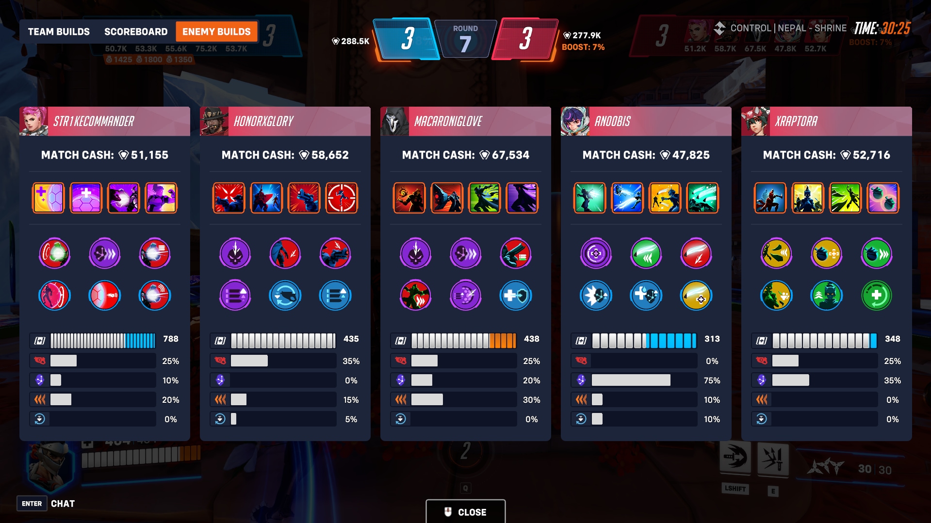 スコアボードで対戦相手のビルドを確認して、チームメイトと一緒に強力なカウンターを練ってみましょう。