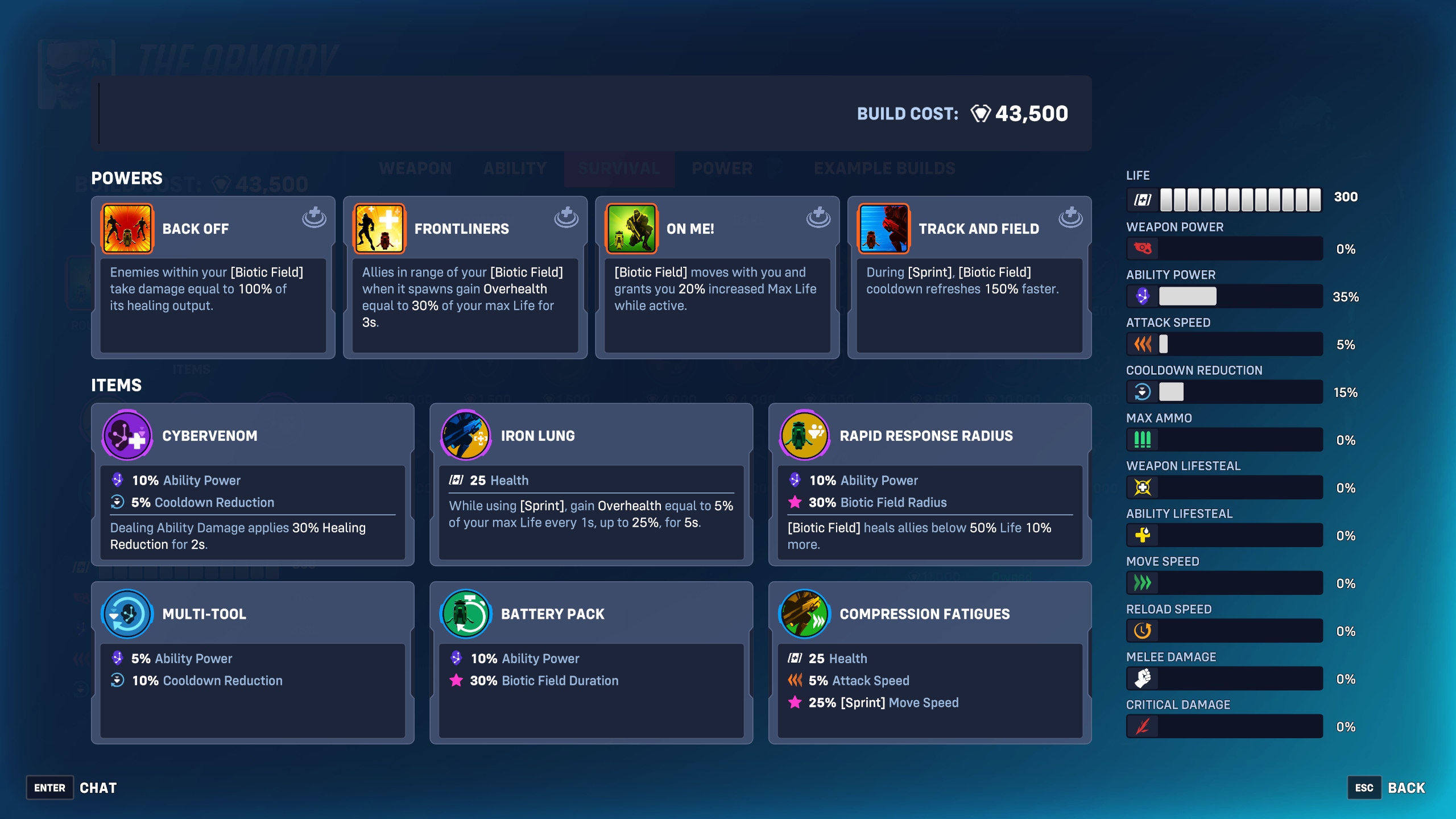 「バイオティック・フィールド」を強力な範囲攻撃系の武器に変化させるパワー、例えば「トラック・アンド・フィールド」や「俺に続け!」、「失せな!」、「前線兵」などを、ラウンドを通じて装備しましょう。