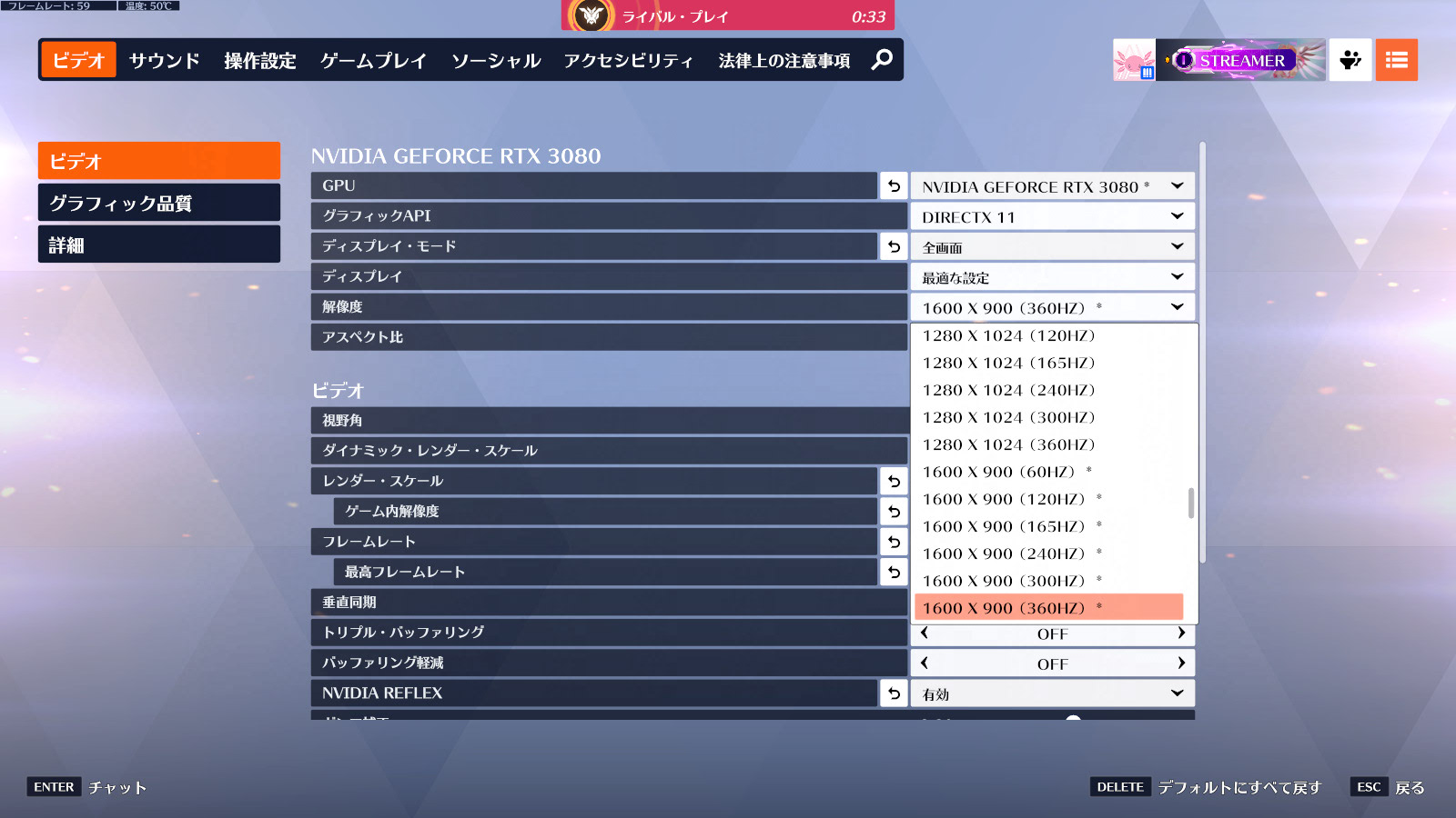 圧倒的なエイムで敵チームを破壊し同大会のMVPにもなった同氏は、オーバーウォッチ2を解像度1600×900でプレイしています。