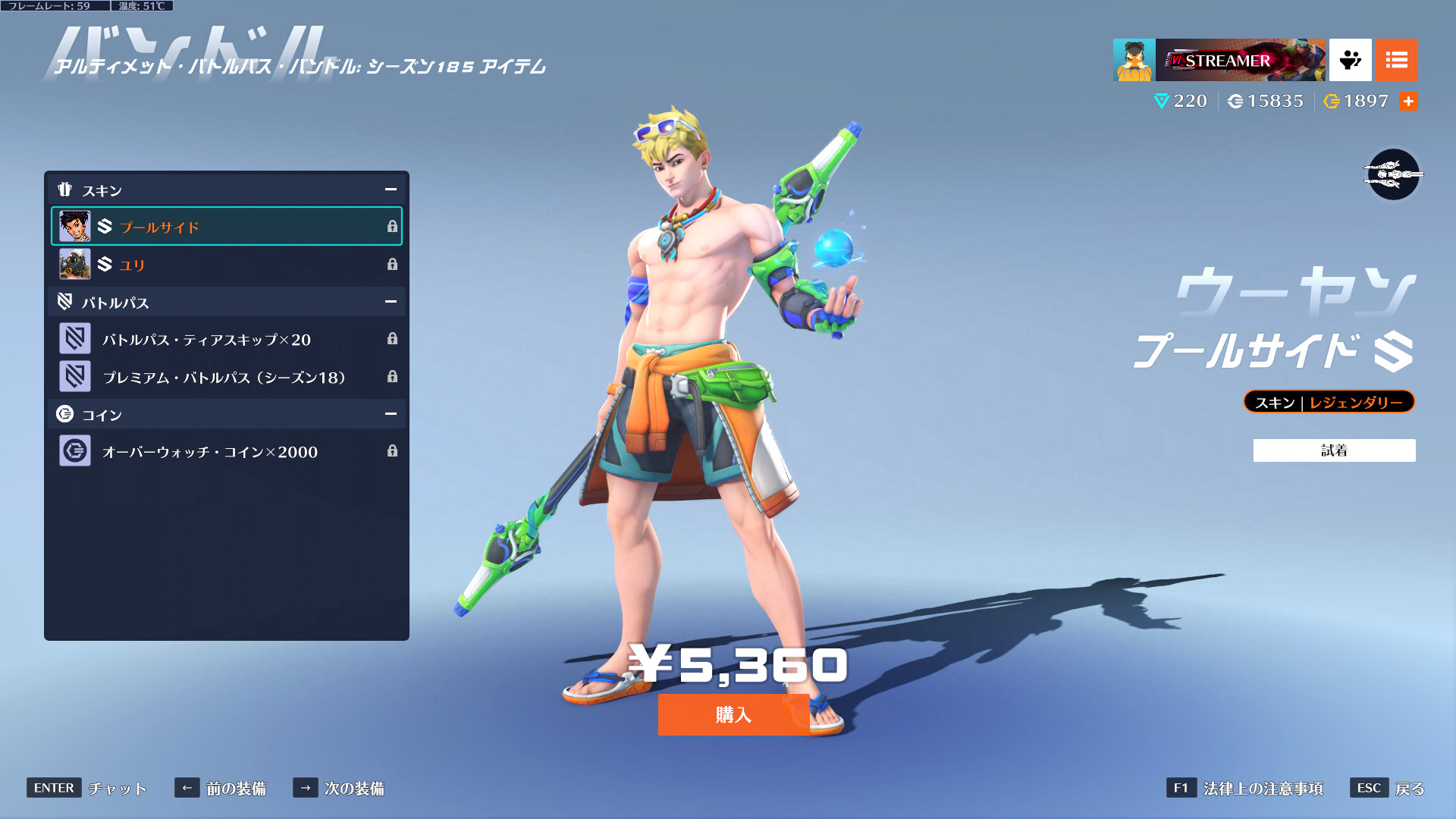 最近気づいたけど、自分はどうやらキャラクターに自分を投影するタイプらしい。アナ以外の女性キャラのスキンは買ったことがないのに、ウーヤンの水着スキンとかLWのライフセーバースキンとかは普通に買ってたわ。