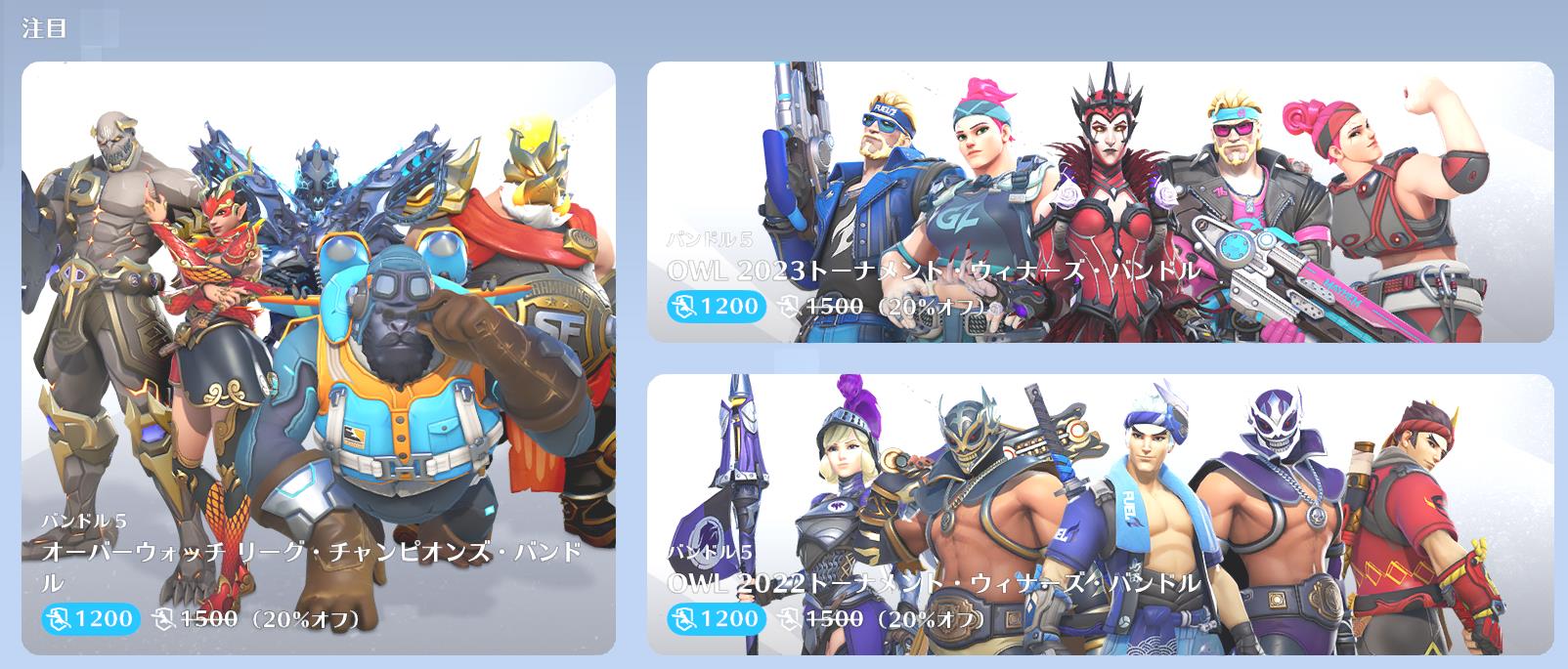 ・10月9日~10月15日:OWL 2022トーナメント バンドル(リーパー用スキン「ルチャドール」、マーシー用スキン「ロイヤルナイト」、ゲンジ用スキン「法被」、ゼニヤッタ用スキン「クロックワーク」を同梱)