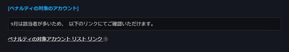 本日9月度のチーターへのペナルティ状況が公開されました。