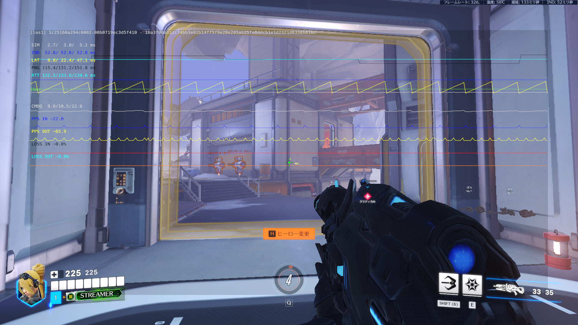これらの状態は、ゲーム内で「Ctrl + Shift + N」を押して「SIM」の値を確認することで検証できます。SIMの値は入力遅延と、その安定性を示しています。
