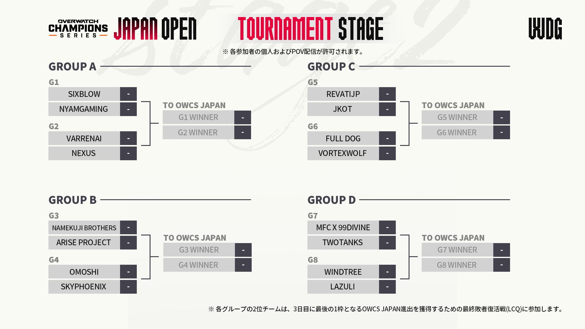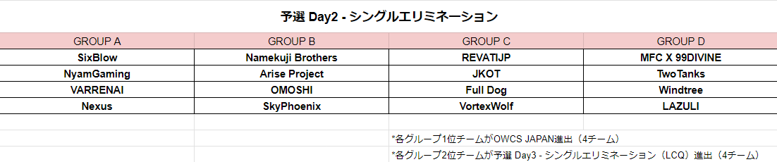 各グループ1位チームがOWCS JAPAN本戦に進出 (4チーム)