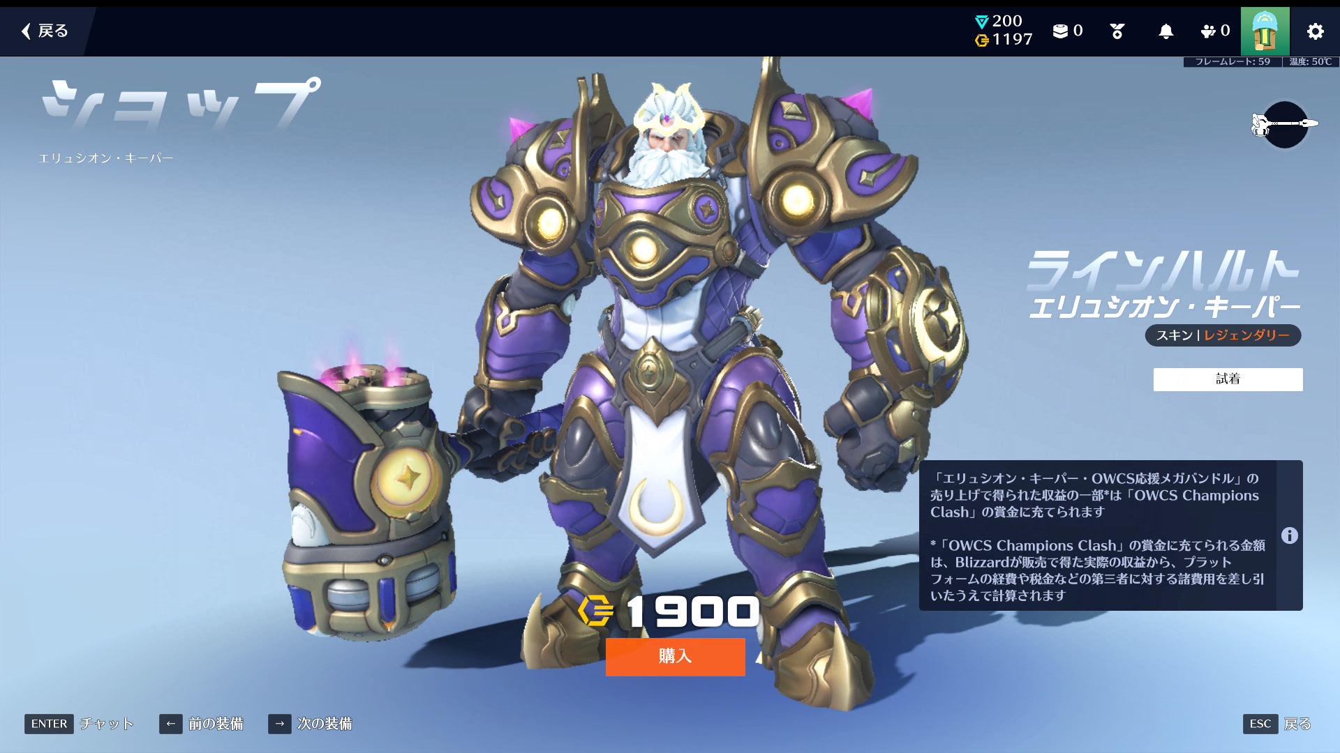 ラインハルトのスキン「エリュシオン・キーパー」