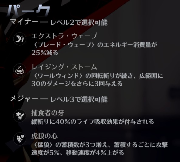 「捕食者の牙」は、マイナー・パークでありながら非常に強力な自己回復能力を持っていました。今回の調整でこれをメジャー・パークへ移行することで、その性能に見合った立ち位置に設定しました。