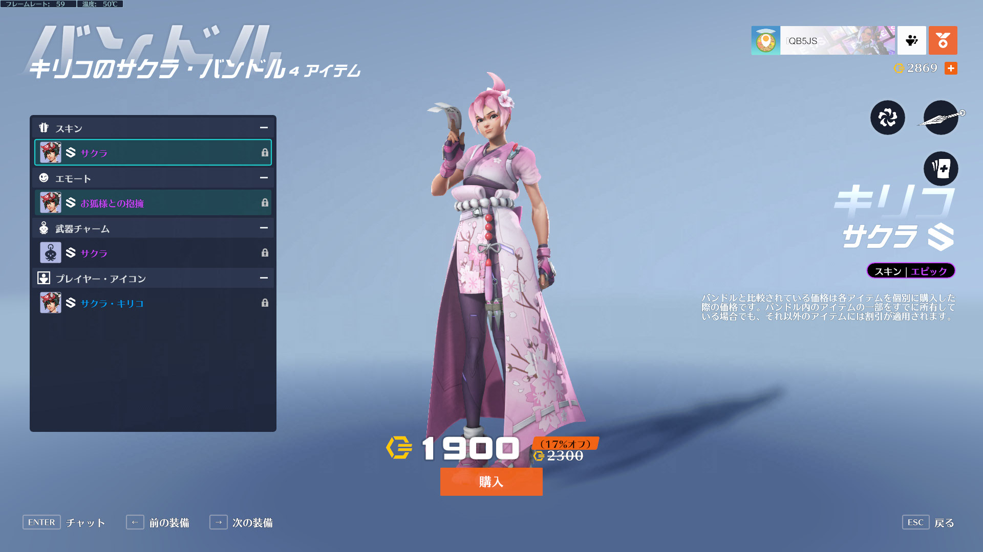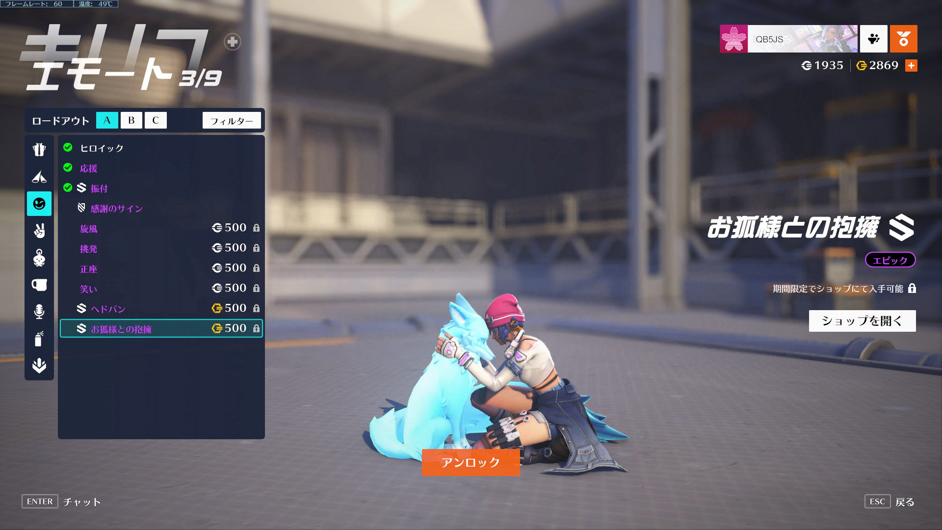 クソかわエモートは500コインなので、アイコンとチャームいらないって人はスキンとエモート単品で購入するのもアリかも