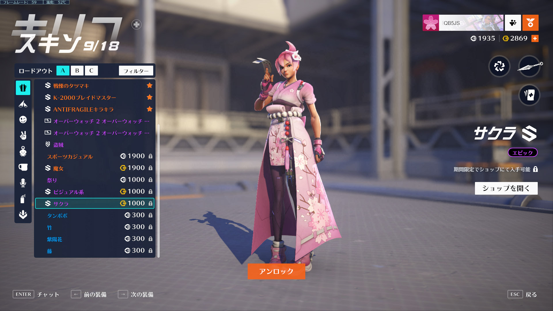 ヒーローギャラリーから900コイン引きでスキン単品を購入することも可能です
