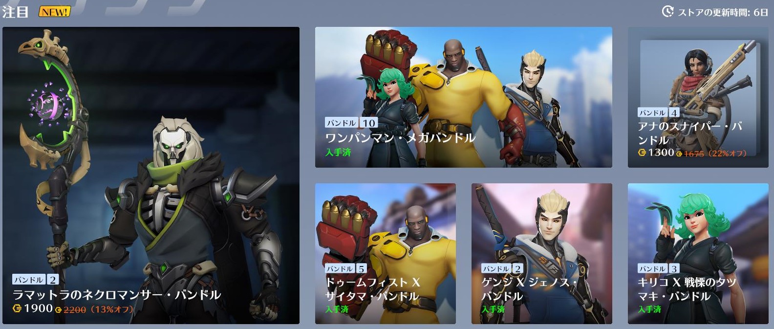 ショップ情報 【3月22日】ショップ更新内容まとめ ショップ更新内容まとめ 本日ショップが更新されました。 現在のショップ画面 管理人 ワンパンマン関連スキンが入手済みになってしまっているので下記より価格確認お願いします! ラマットラのネクロマンサー・バンドル アナのスナイパー・バンドル ゲンジ×ジェノス・バンドル キリコ×戦慄のタツマキ・バンドル ドゥームフィスト×サイタマ・バンドル ワンパンマン・メガバンドル 【OW2】Twitterでバズったカスタムコードまとめ2024.5.27Twitterでバズったカスタムコードまとめ 管理人Twitterでご紹介してバズったカスタムコードをまとめました! 管理人こちら適宜追加していきますので、オススメのカスタムコード... Twitter