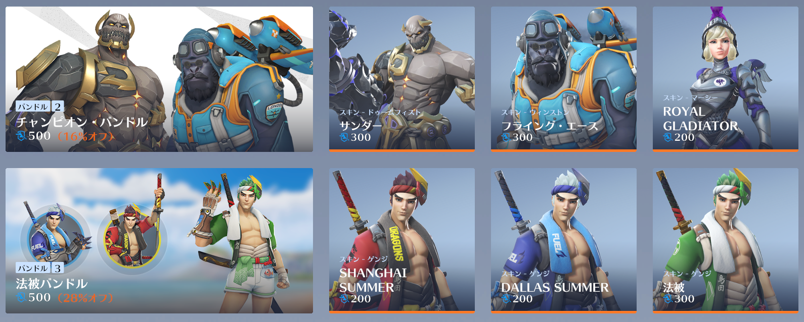 セットだと500、それぞれ単品の場合は200トークン、緑の「法被」のみ300トークンです。