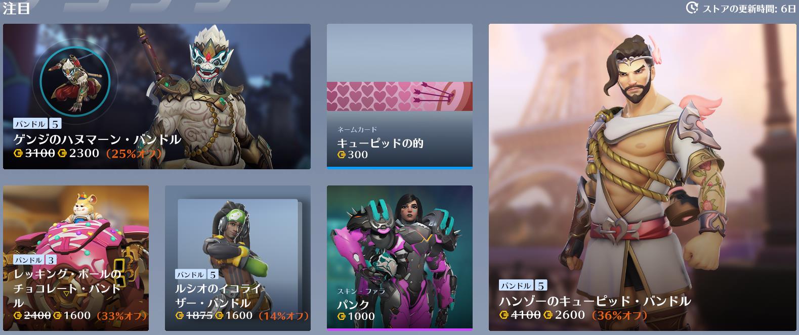 ショップ情報 【2月22日】ショップ更新内容まとめ ショップ更新内容まとめ 本日ショップが更新されました。 現在のショップ画面 ゲンジのハマヌーン・バンドル キューピッドの的 ハンゾーのキューピッド・バンドル レッキング・ボールのチョコレート・バンドル ルシオのイコライザー・バンドル ファラのスキン「パンク」 【OW2】Twitterでバズったカスタムコードまとめ2024.5.27Twitterでバズったカスタムコードまとめ 管理人Twitterでご紹介してバズったカスタムコードをまとめました! 管理人こちら適宜追加していきますので、オススメのカスタムコード... Twitter