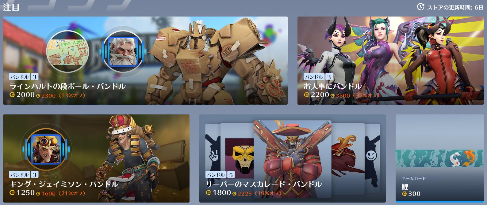 ショップ情報 【5月24日】ショップ更新内容まとめ ショップ更新内容まとめ 本日ショップが更新されました。 現在のショップ画面 ラインハルトの段ボール・バンドル お大事にバンドル キング・ジェイミソン・バンドル リーパーのマスカレード・バンドル ネームカード「鯉」 D.Vaのとっておきバンドル リンドホルム・チーフエンジニア・バンドル 【OW2】Twitterでバズったカスタムコードまとめ2024.5.27Twitterでバズったカスタムコードまとめ 管理人Twitterでご紹介してバズったカスタムコードをまとめました! 管理人こちら適宜追加していきますので、オススメのカスタムコード... Twitter