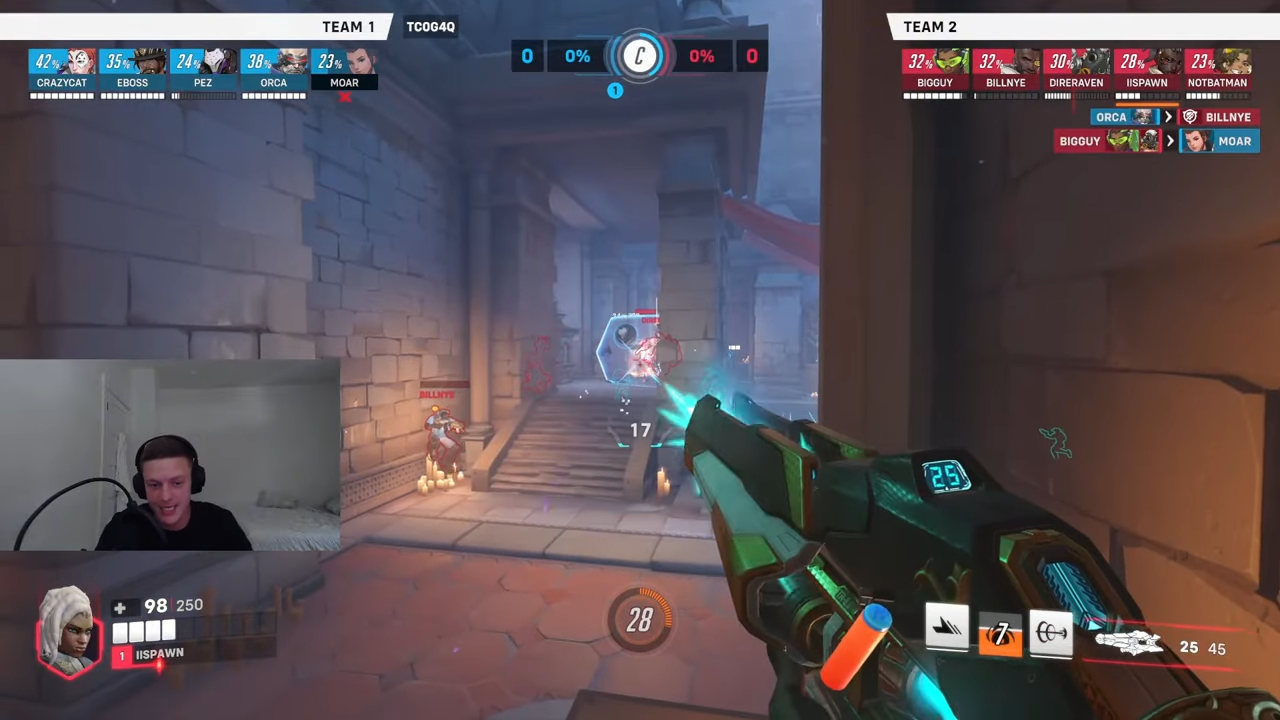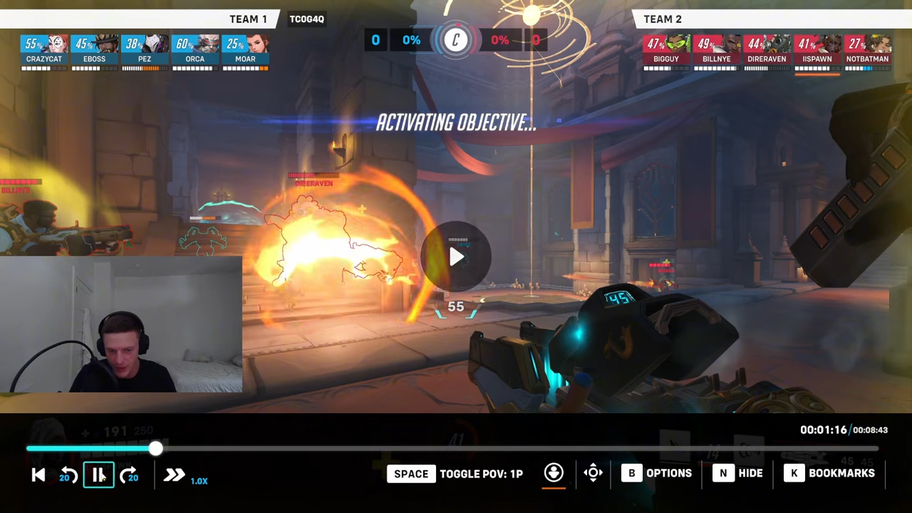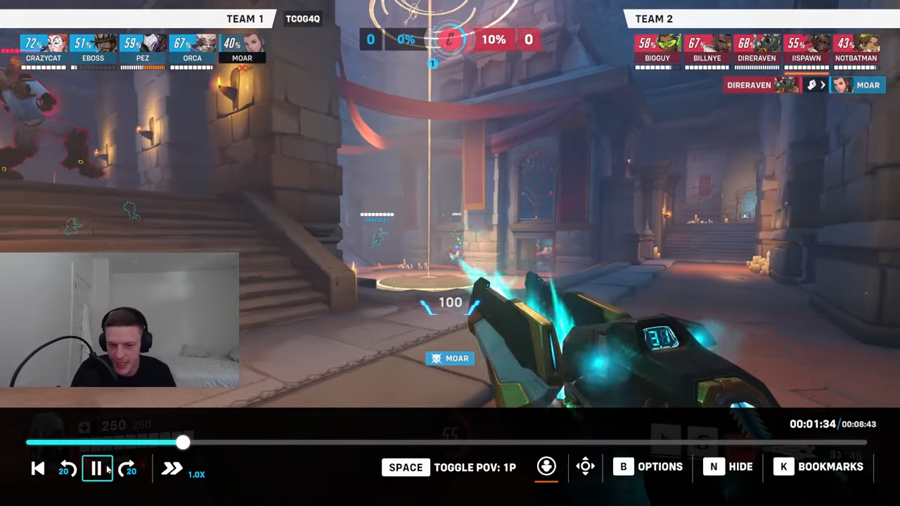 動画で指摘された最初のミス:45%でフルヘルスのキャスディにレールガンを撃った