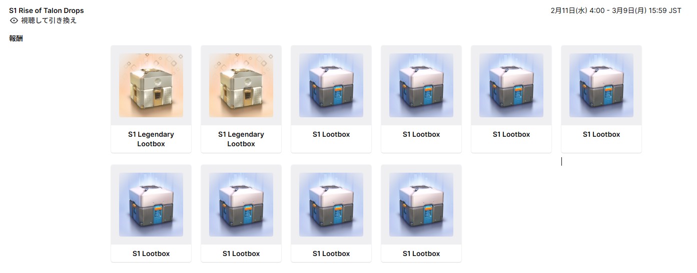 3時間視聴して報酬「S1 Lootbox」を受け取りましょう