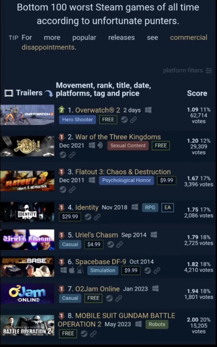 史上最低評価を記録するもユーザー数は伸び、売上も上々と色んな意味で盛りがっているOW2、良くも悪くも話題のゲームとして注目を浴びるいい機会になったのではないでしょうか