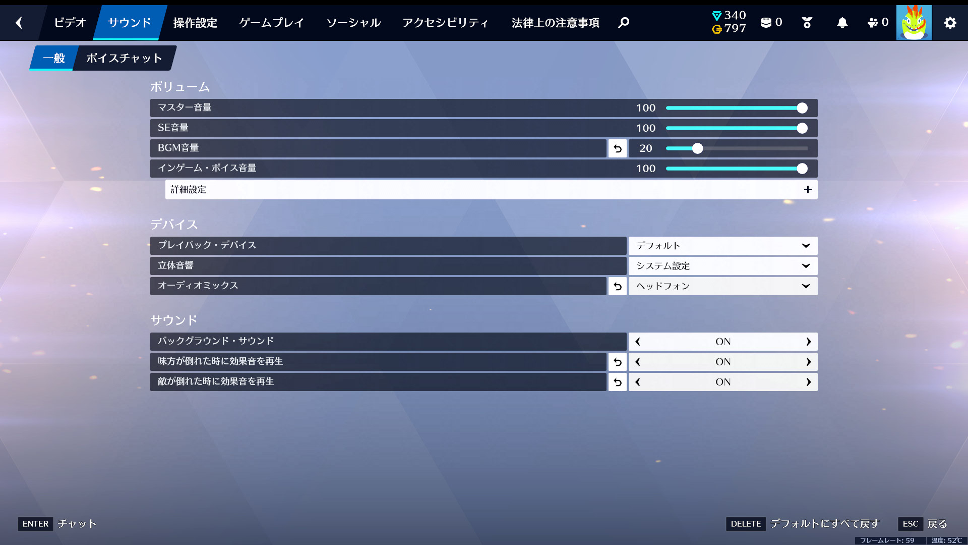 • 味方/敵が倒れた時の効果音:オン推奨(戦況を把握しやすくなる)