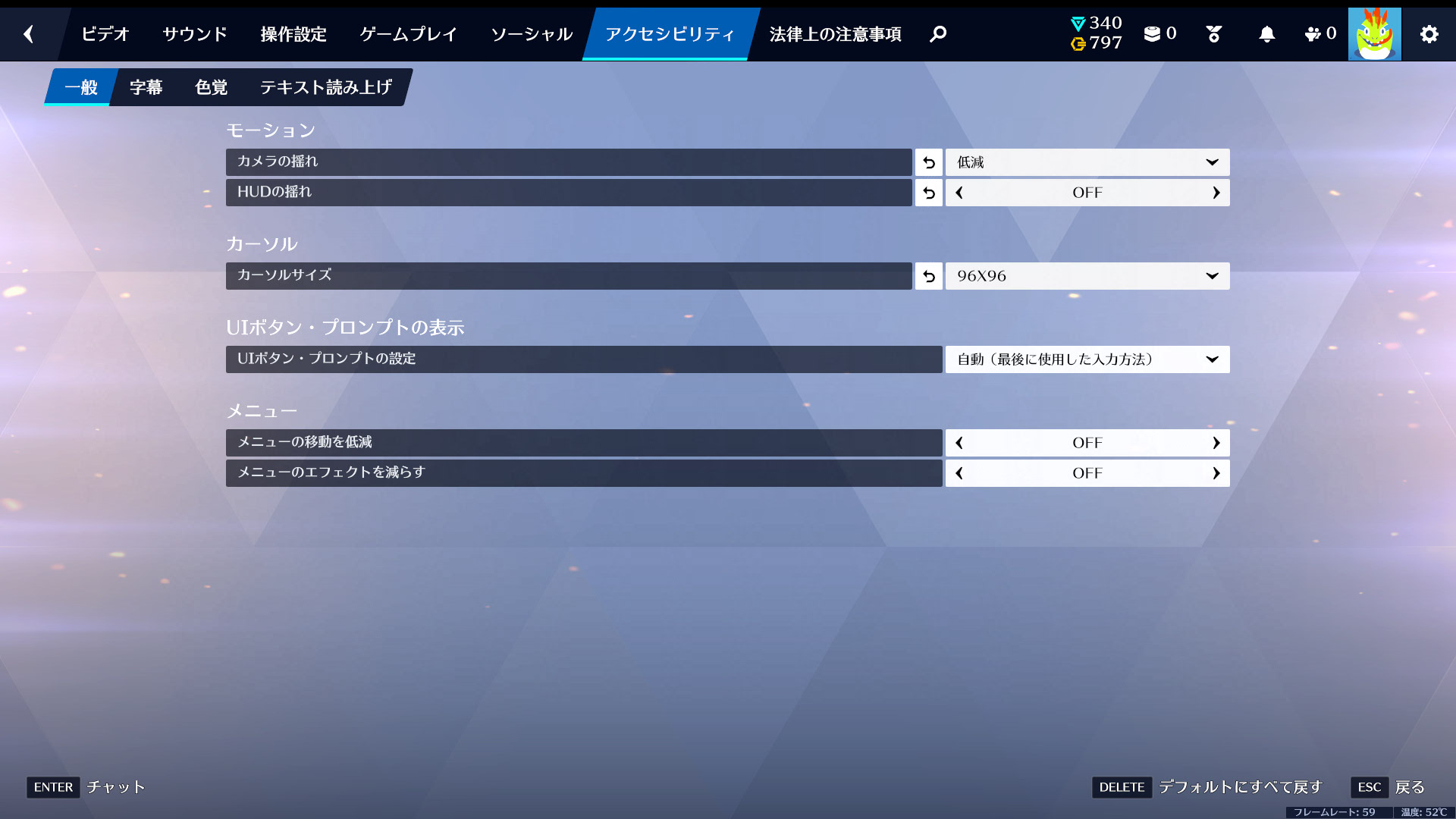• カメラ/HUDの揺れ:オフ推奨。競技面ではデメリットでしかない
