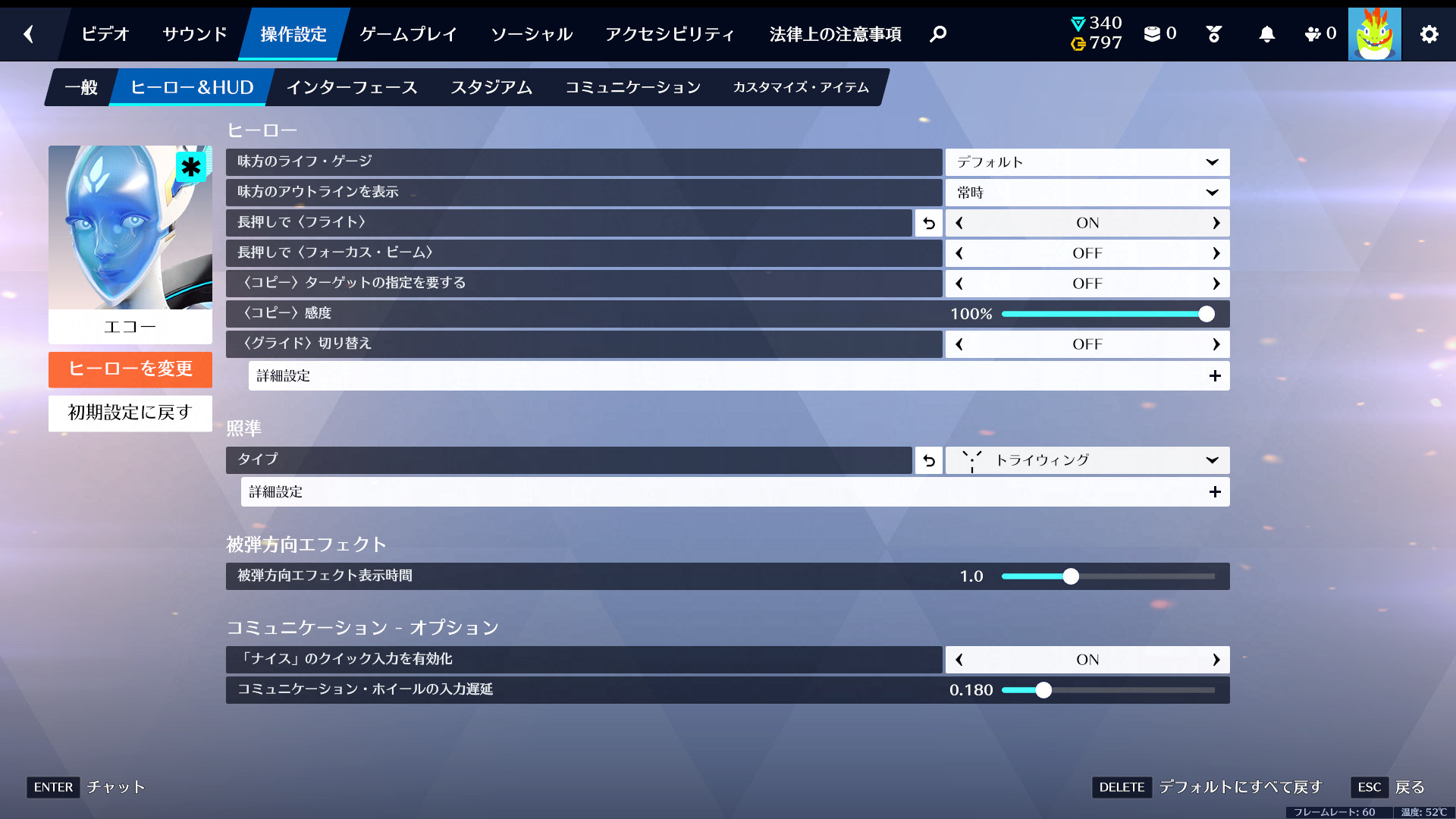 • 字幕:オン推奨。敵のULT(必殺技)を使ったかなどの情報が拾いやすくなる
