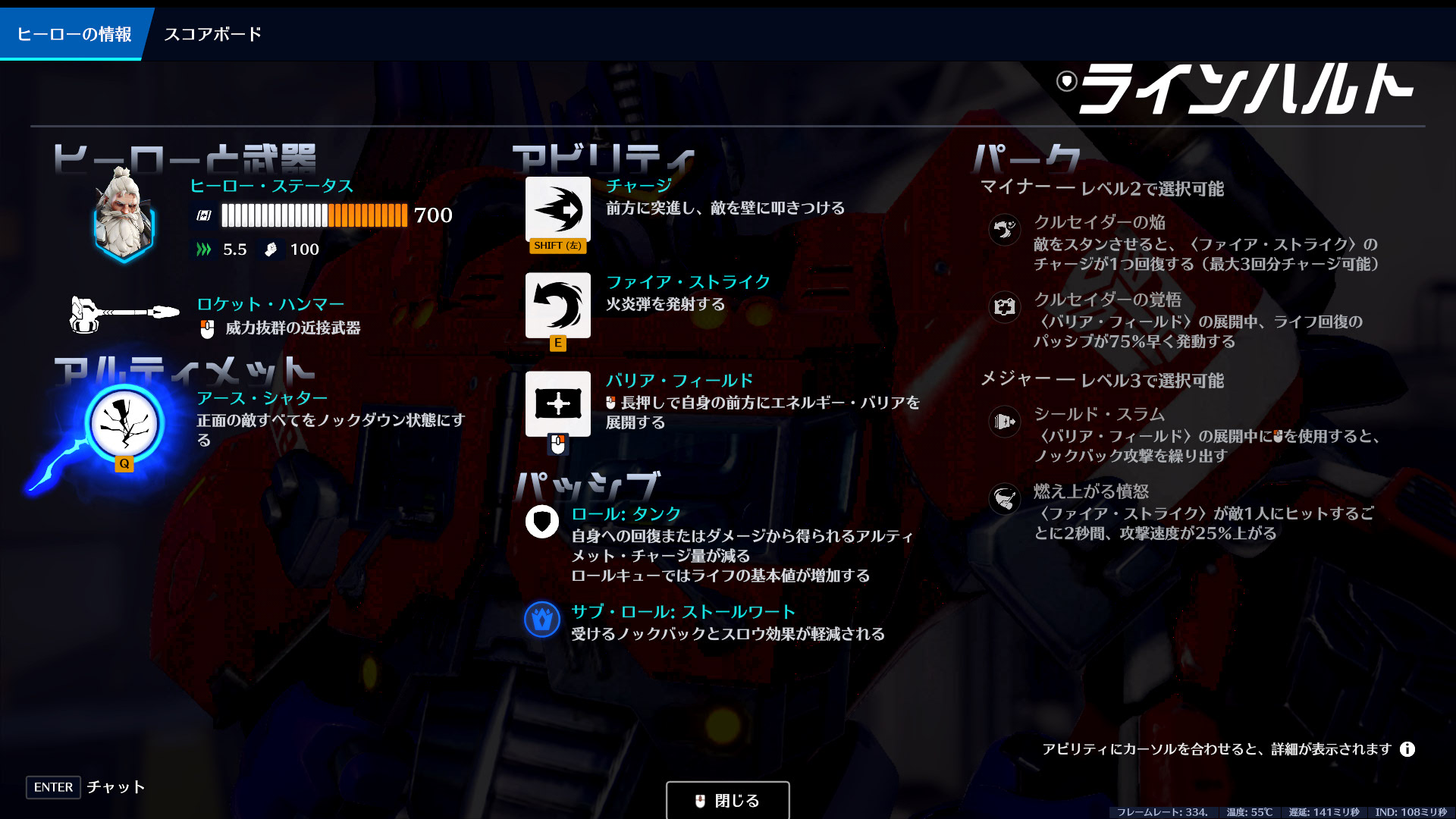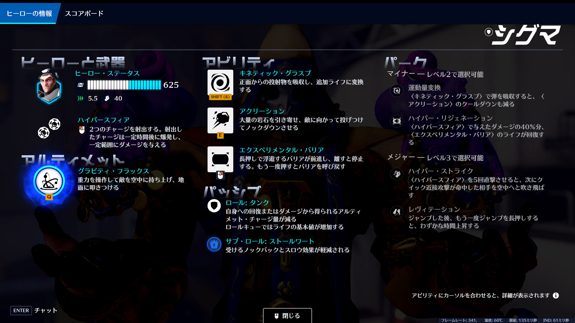 中距離から岩やスフィアを使って戦うポーク型タンク。エイムがある人には高い火力とシールドを両立できる強力な選択肢です。