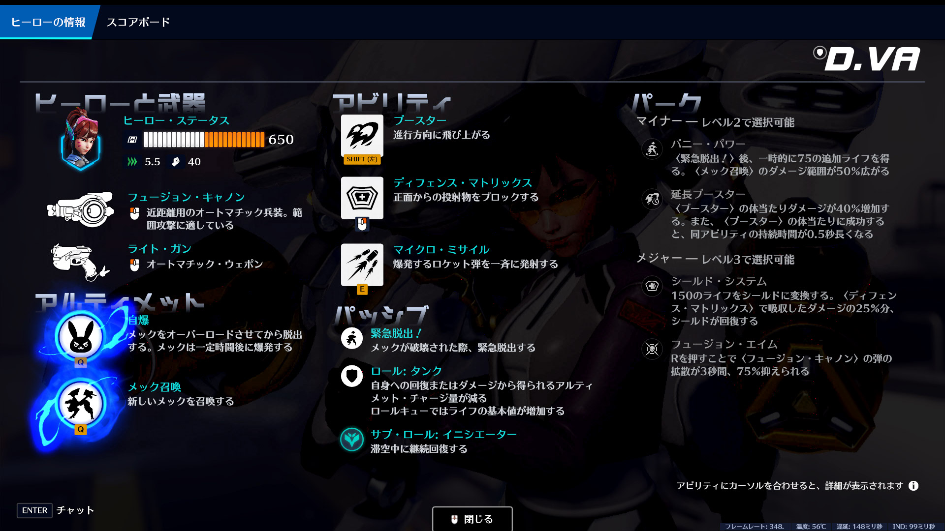 ブーストで空中を移動できるため、敵に高台を制圧されて何も出来ない時なども問題なし。弾を吸収する防御スキルの「ディフェンスマトリックス」はリソース式なので残量に注意しましょう。